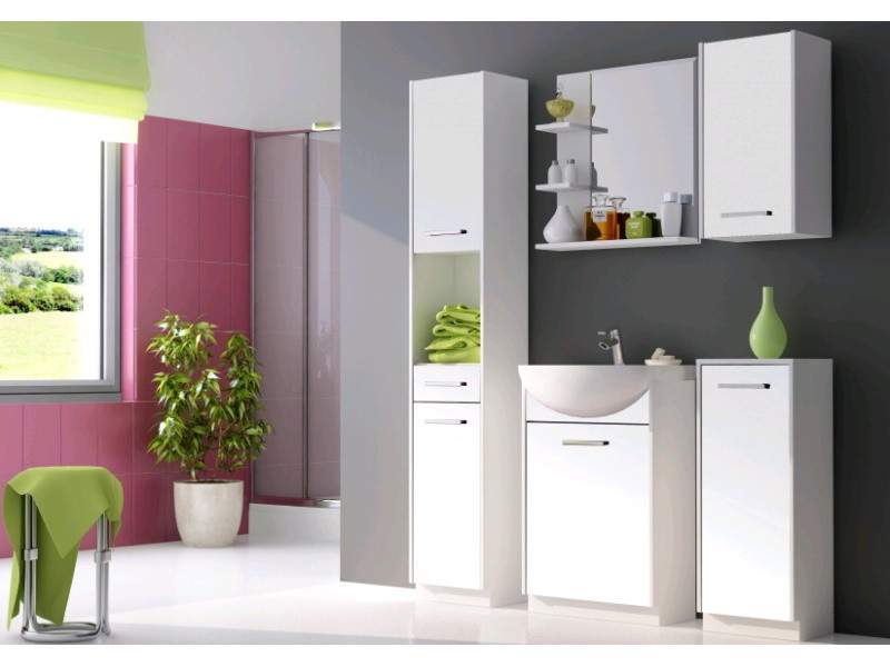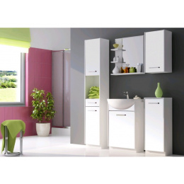 NANCY - koupelnový nábytek v bílé barvě s čely z MDF materiálu ve třech barvách, odolné vůči vlhkosti a vysokým teplotám. Umyvadlo není součástí této sestavy, musí se doobjednat zvlášť - SONATA 50.
