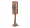 Úzký kovový kalich, z naší přepychové kolekce dekoračního zboží, vám přináší noblesu a eleganci přímo na váš stůl. Zlatá barva a starožitný vzhled povýší vaše každodenní stolování na královskou úroveň. S tímto unikátním artiklem, který věrně připomíná cenný předmět s historickou hodnotou, se budete cítit jako host na královském dvoře, zářící luxusem. Přiveďte si do svého interiéru unikátní ozdobný prvek a proměňte běžné stolování v přepychovou událost plnou romantiky a elegance, na kterou jen tak nezapomenete.