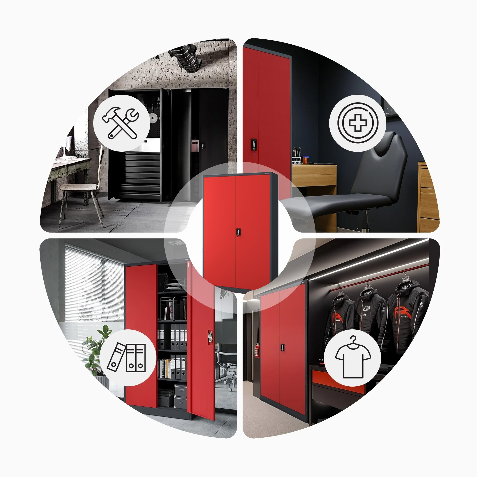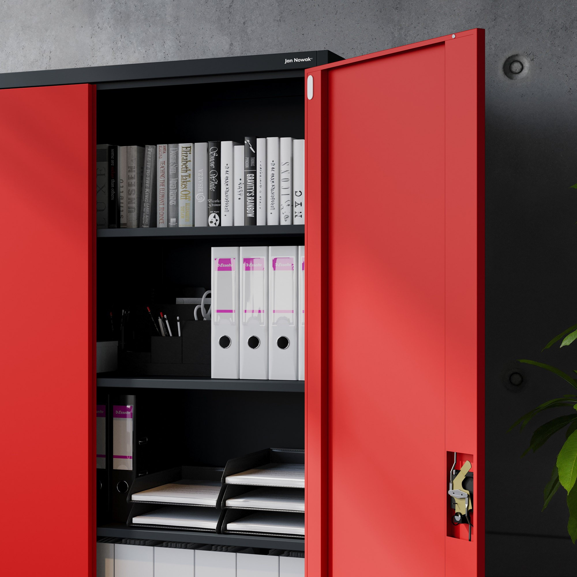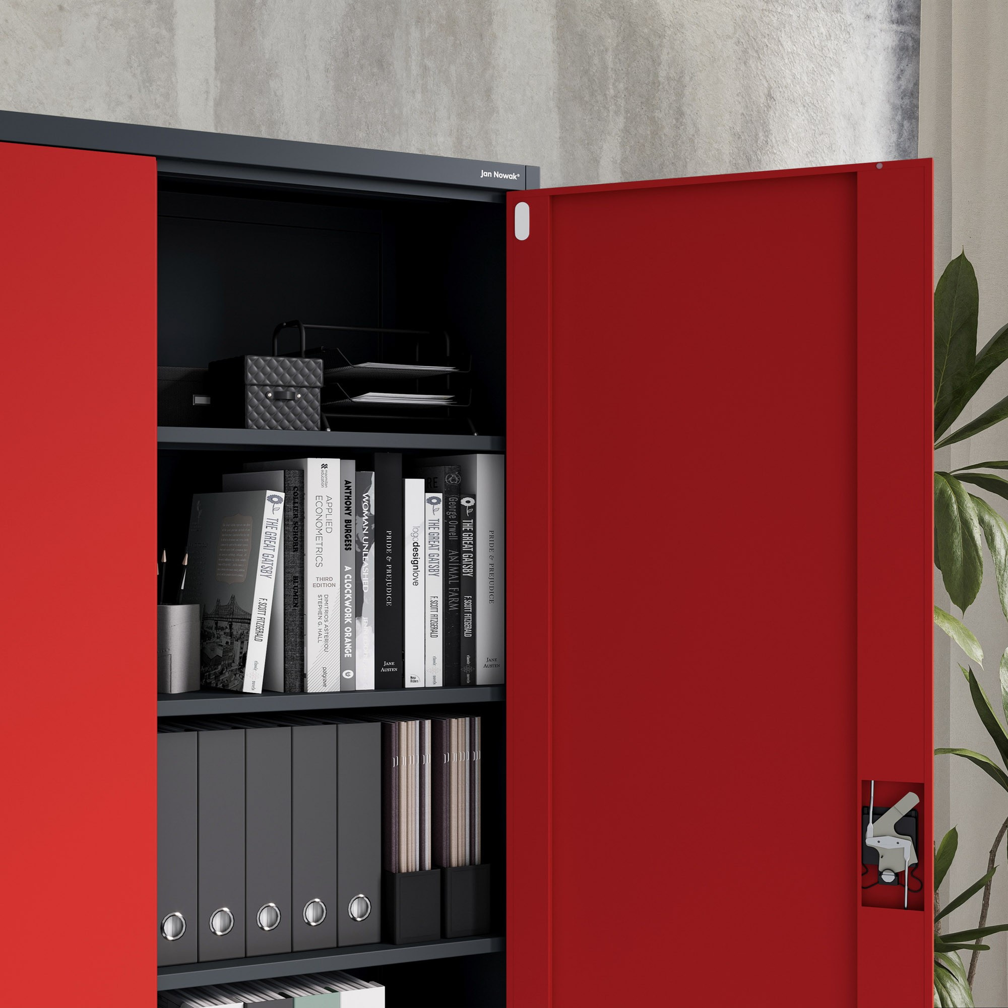 Kovová kancelářská skříň na dokumenty antracitovo-červená JAN II, 1150 x 1850 x 400 mm