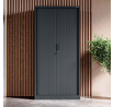 Skříň DAMIAN se pyšní moderním a elegantním designem, který se hodí do každého interiéru. Posuvné dveře (roleta) nejenže šetří prostor, ale také dodávají skříni sofistikovaný vzhled. Antracitová barva (RAL 7016) je nadčasová a snadno se kombinuje s ostatním nábytkem.