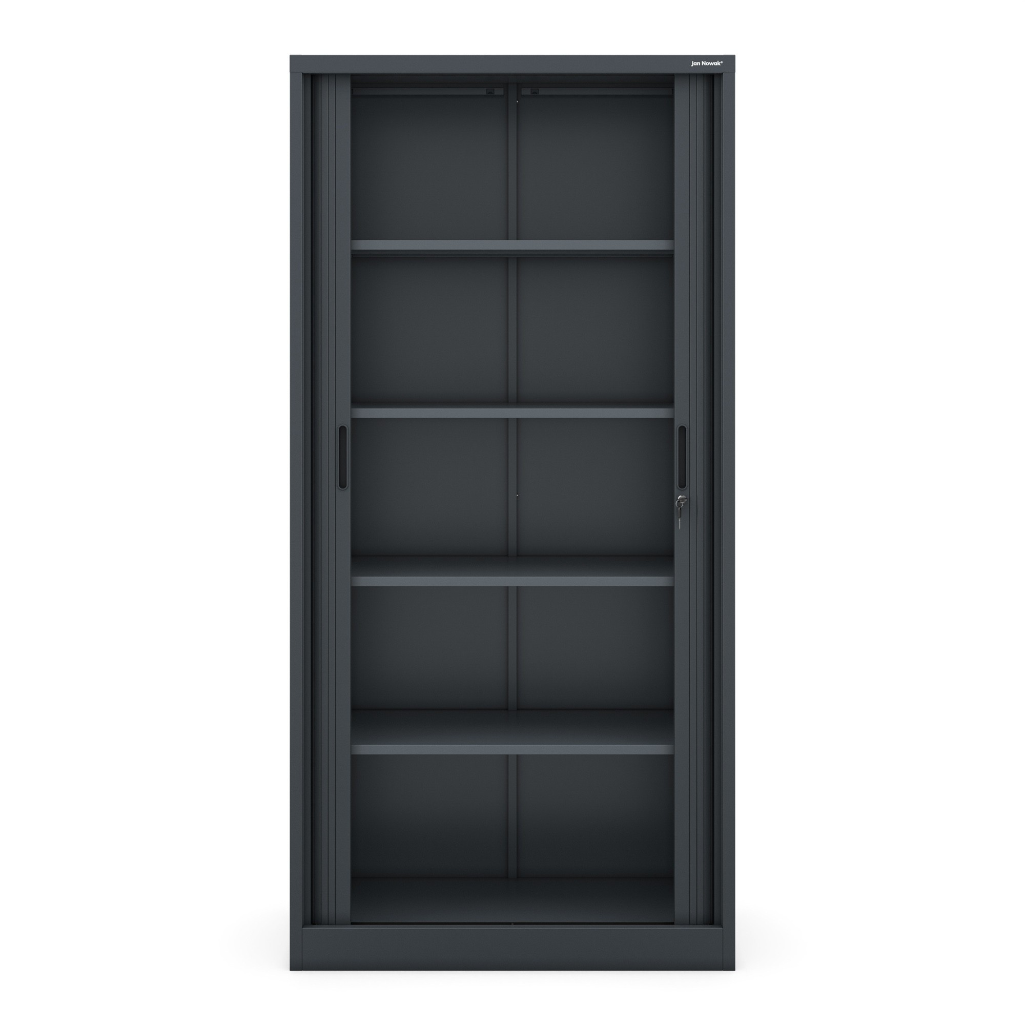 Kovová kancelářská skříň na dokumenty s roletou DAMIAN, 900 x 1850 x 450 mm, antracitová
