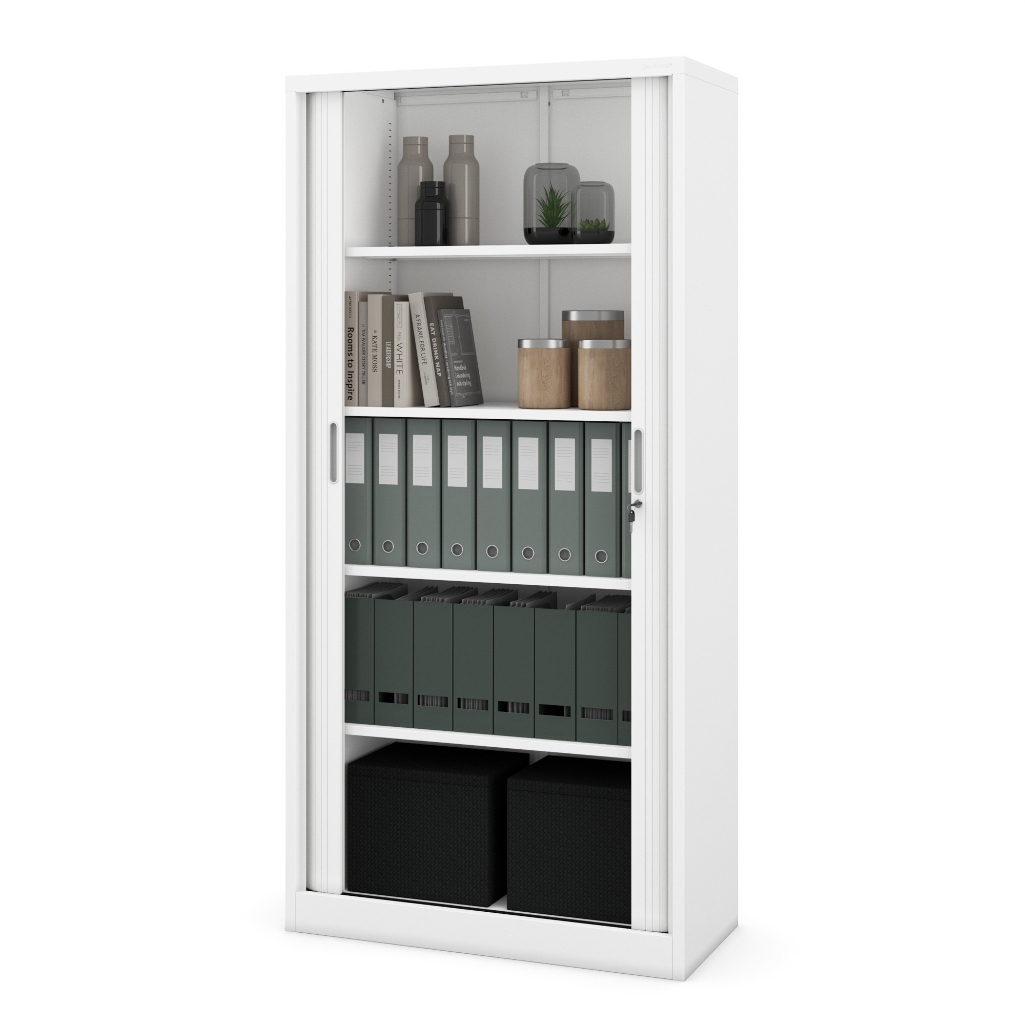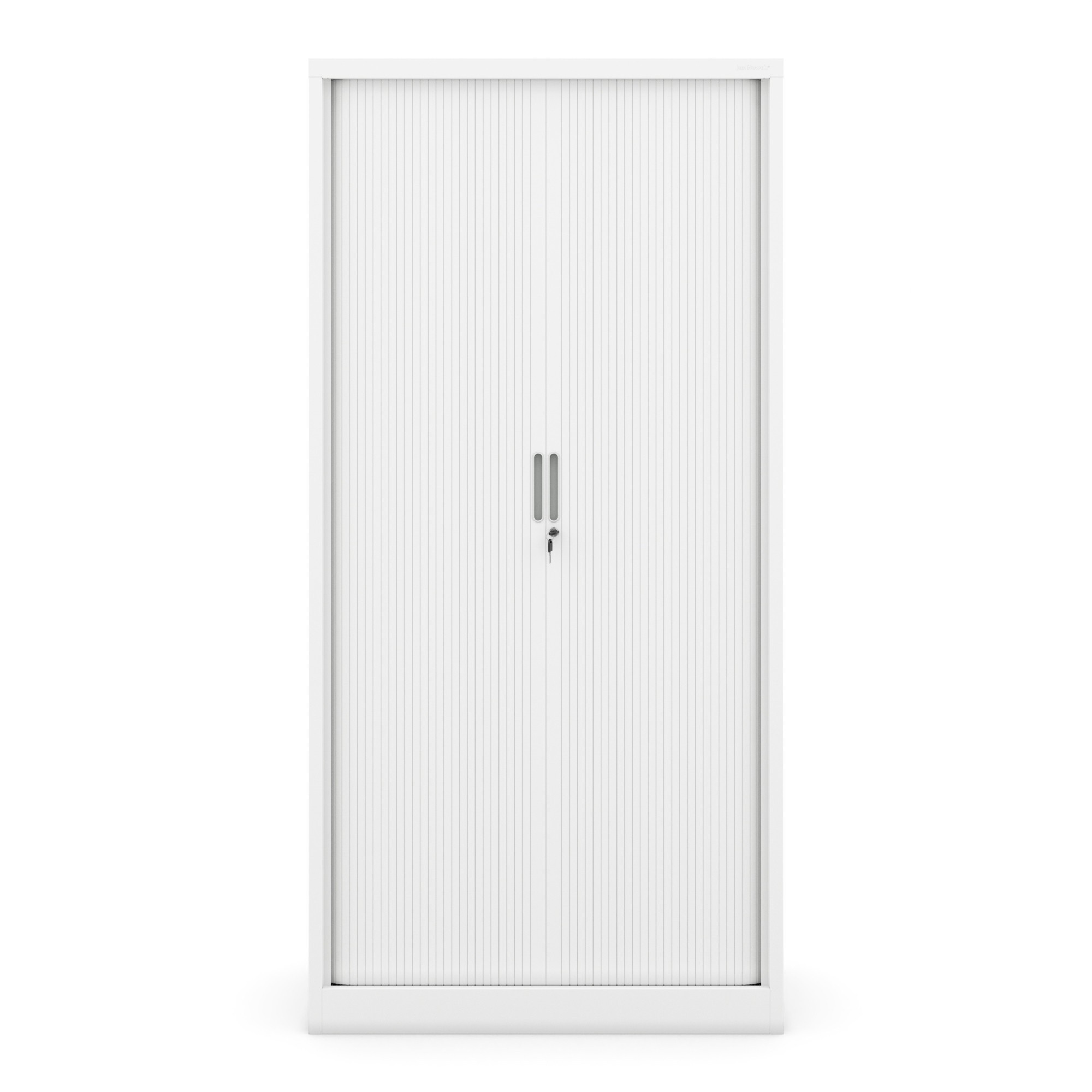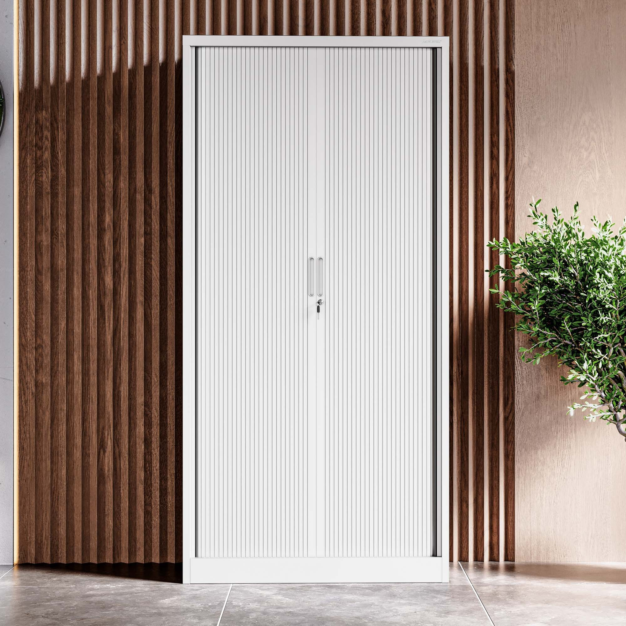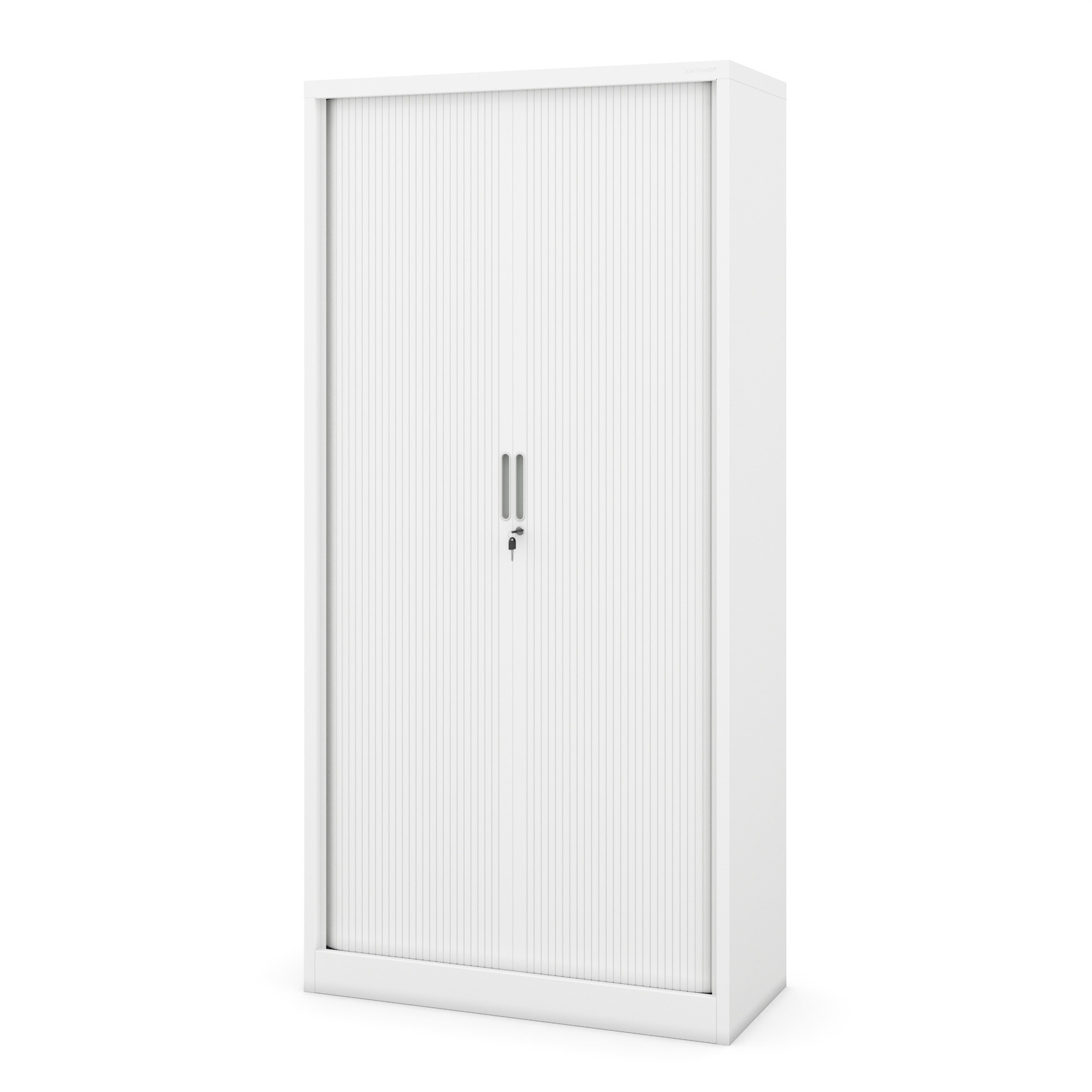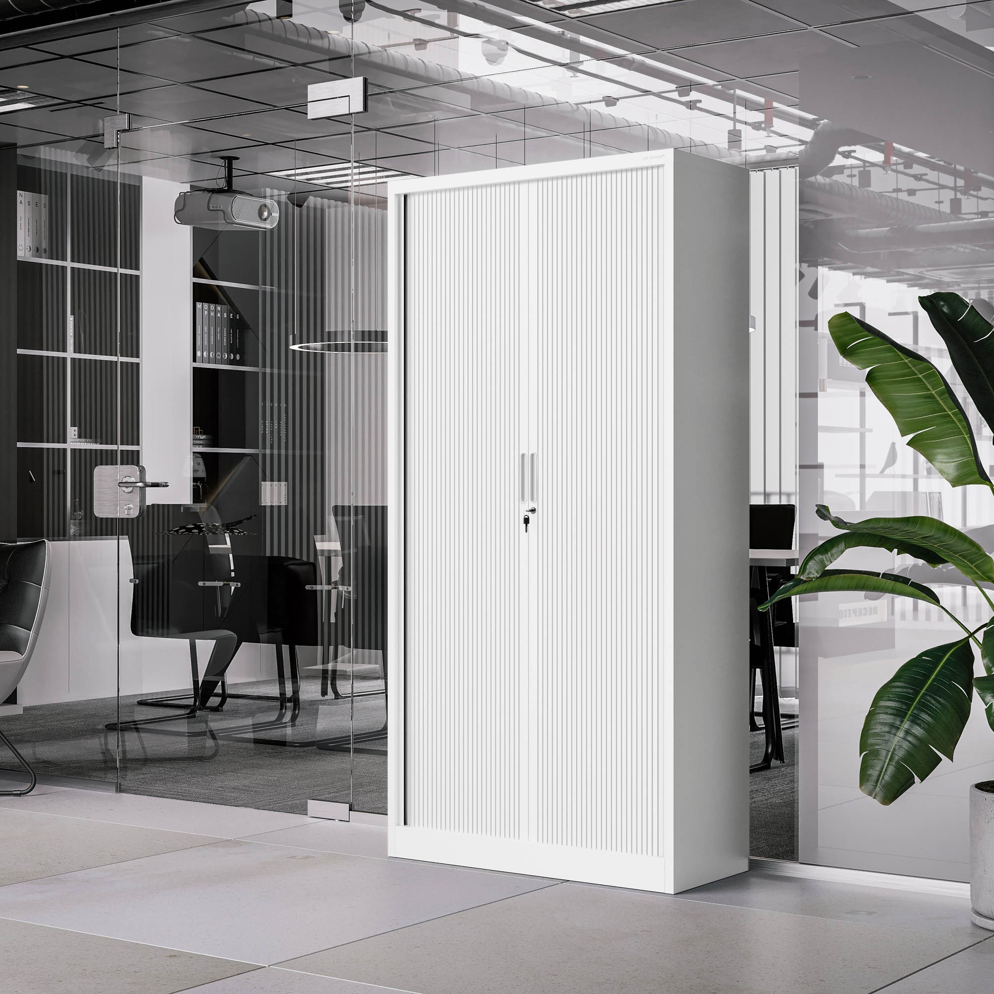 Kovová kancelářská skříň na dokumenty s roletou DAMIAN, 900 x 1850 x 450 mm, bílá