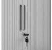 Skříň DAMIAN se pyšní minimalistickým a elegantním designem, který se hodí do každého interiéru. Univerzální bílo-šedá barevnost (RAL 9003 - RAL 7035) dodává skříni moderní a profesionální vzhled. Posuvné dveře ve formě rolety šetří prostor a zároveň působí stylově.