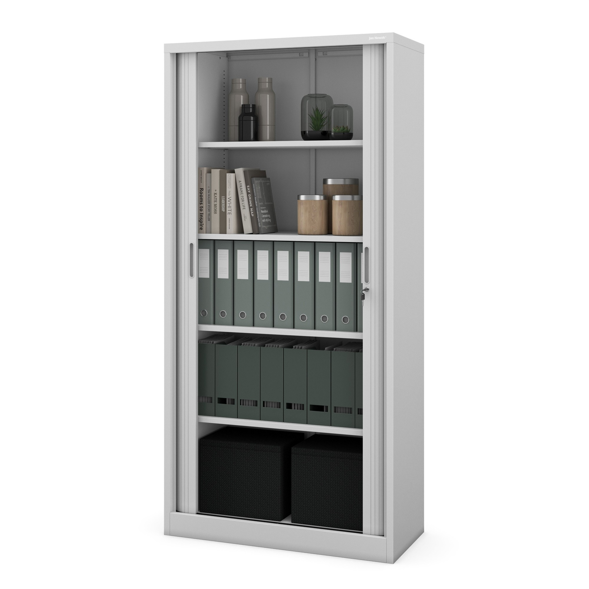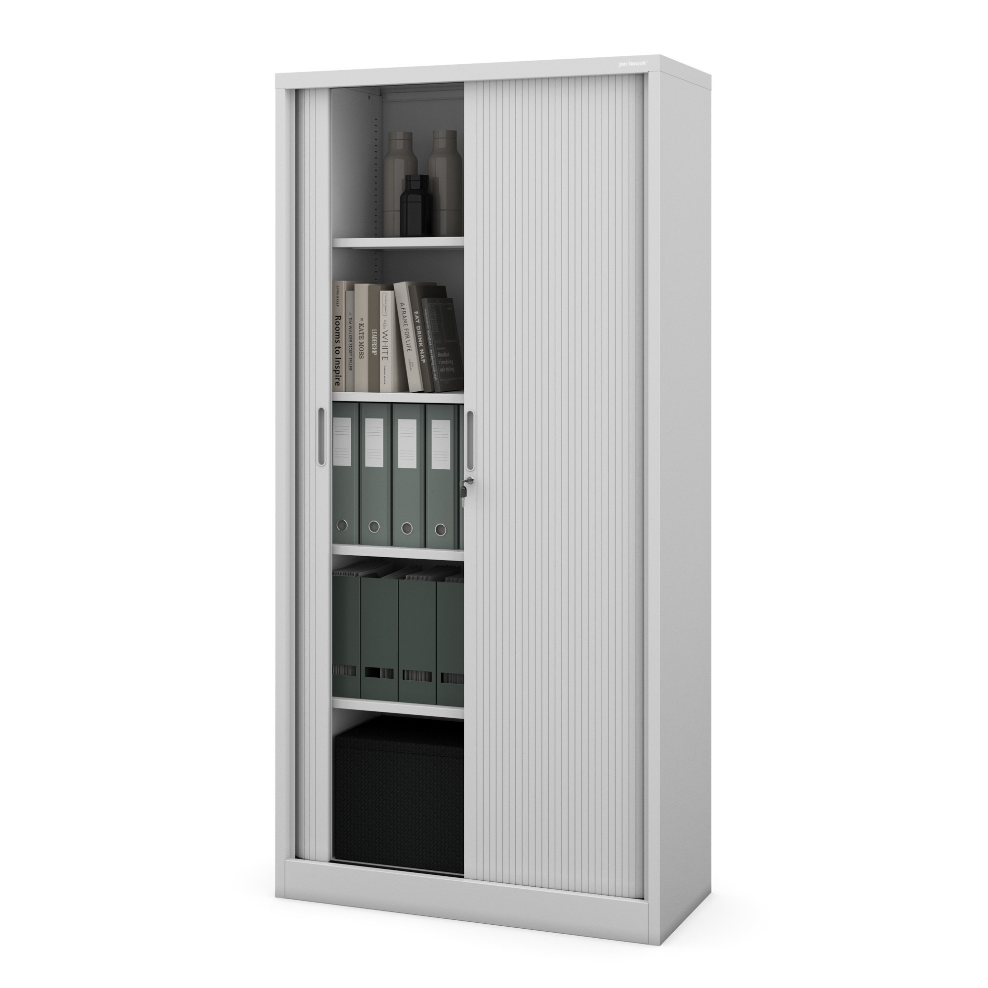 Kovová kancelářská skříň na dokumenty s roletou DAMIAN, 900 x 1850 x 450 mm, šedá