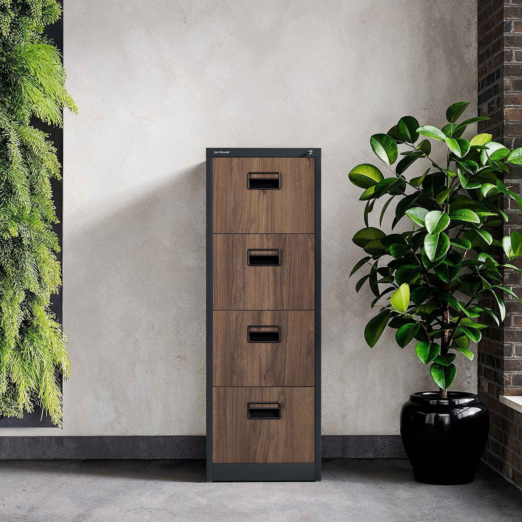 Kovová kartotéková skříň SARA V4, 460 x 1320 x 620 mm, Eco Design: antracitová/ořech