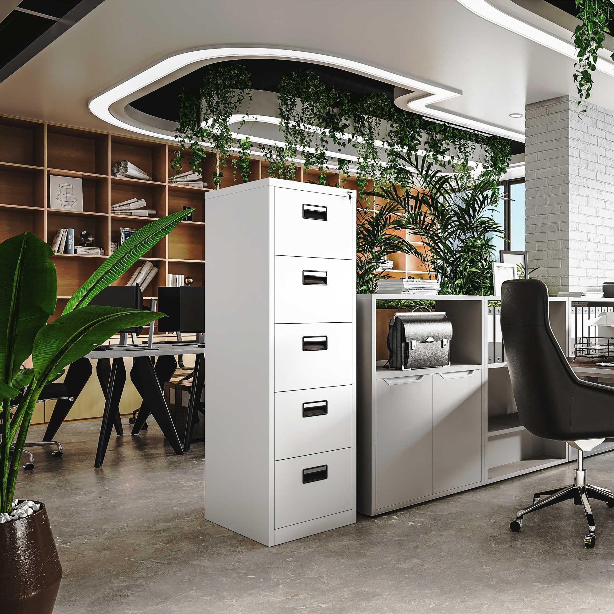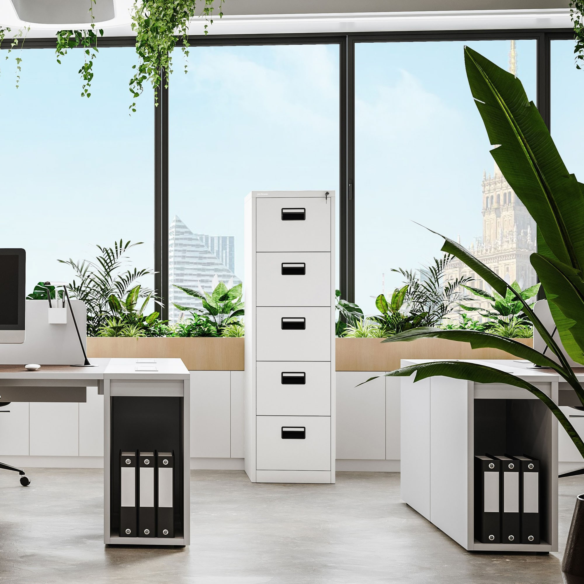 Kovová kartotéková skříň SARA V5, 460 x 1630 x 620 mm, bílá