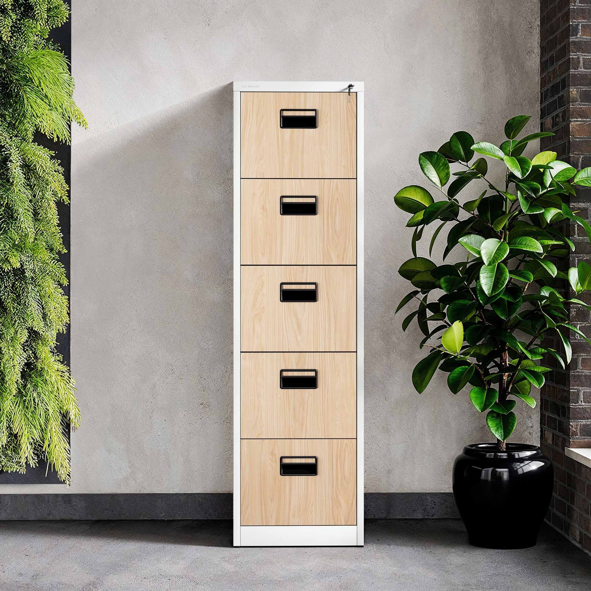 Kovová kartotéková skříň SARA V5, 460 x 1630 x 620 mm, Eco Design: bílá/ dub sonoma