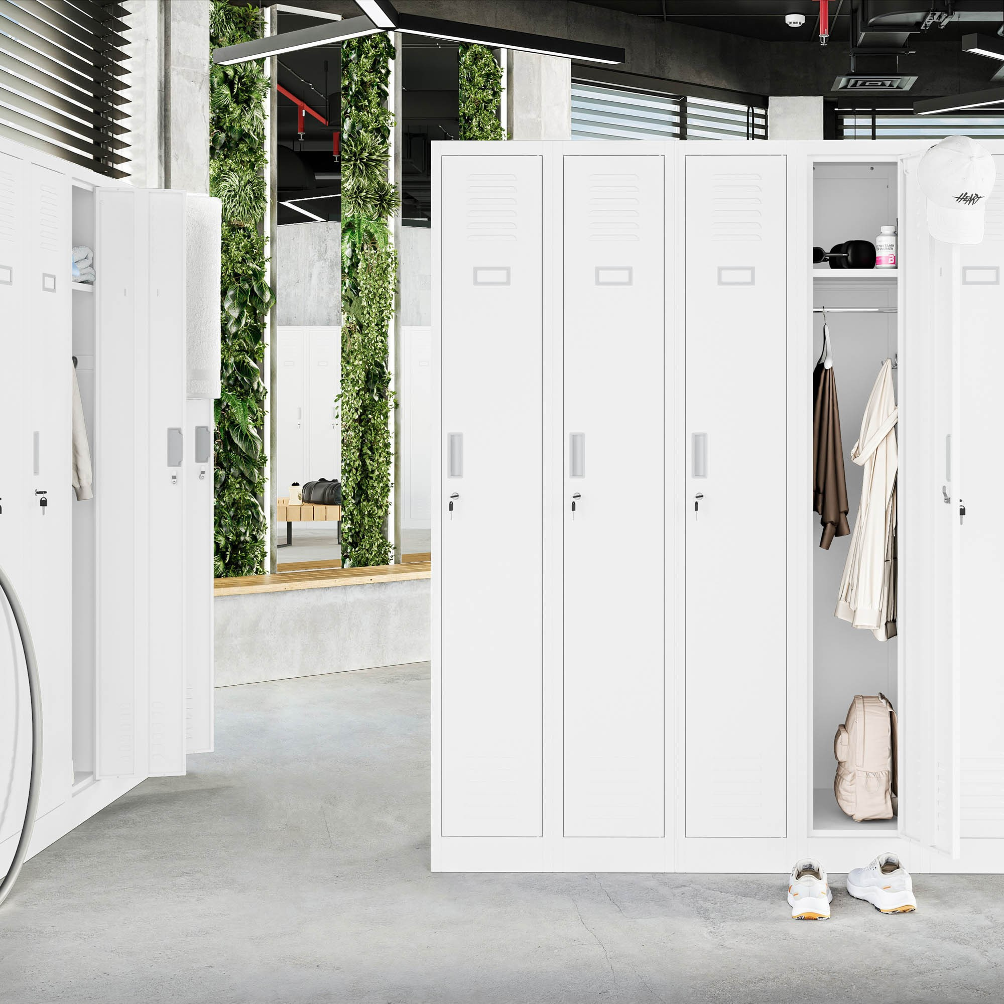 Kovová pracovní skříňka Šatní čtyřkomorová bílá: KACPER II, 600 x 1800 x 500 mm