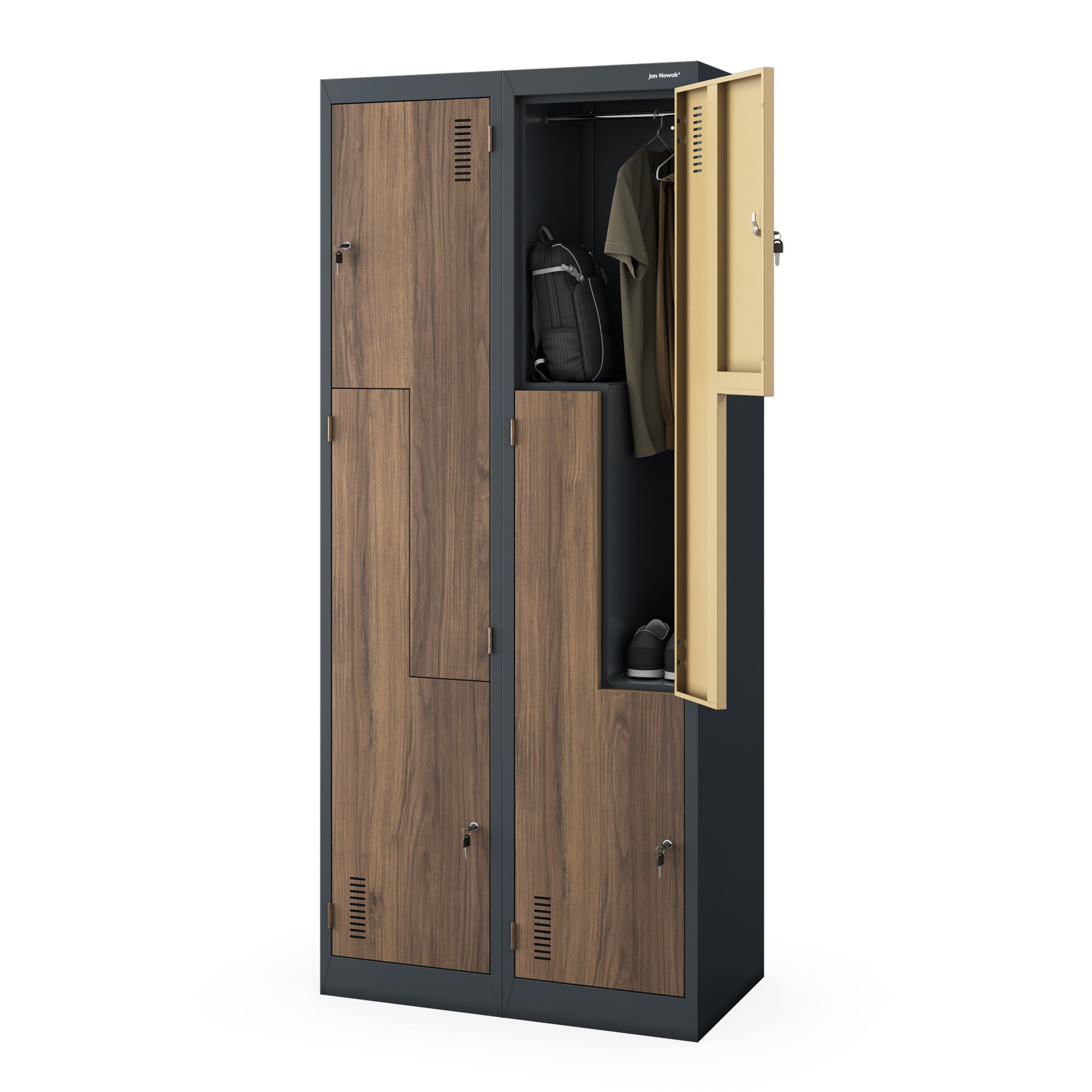 Kovová šatní skříň JULIA, 800 x 1850 x 450 mm, Eco Design: antracitová/ořech