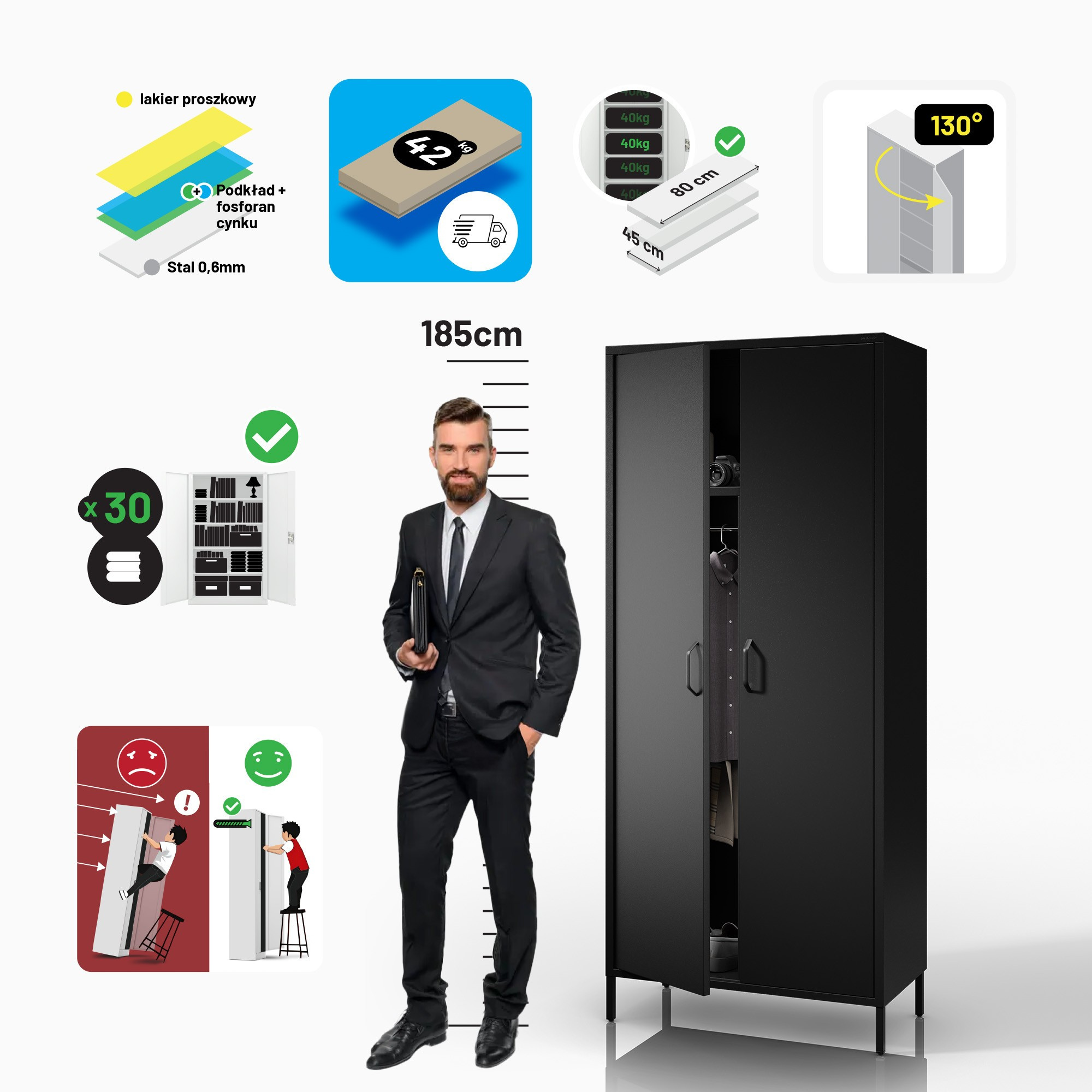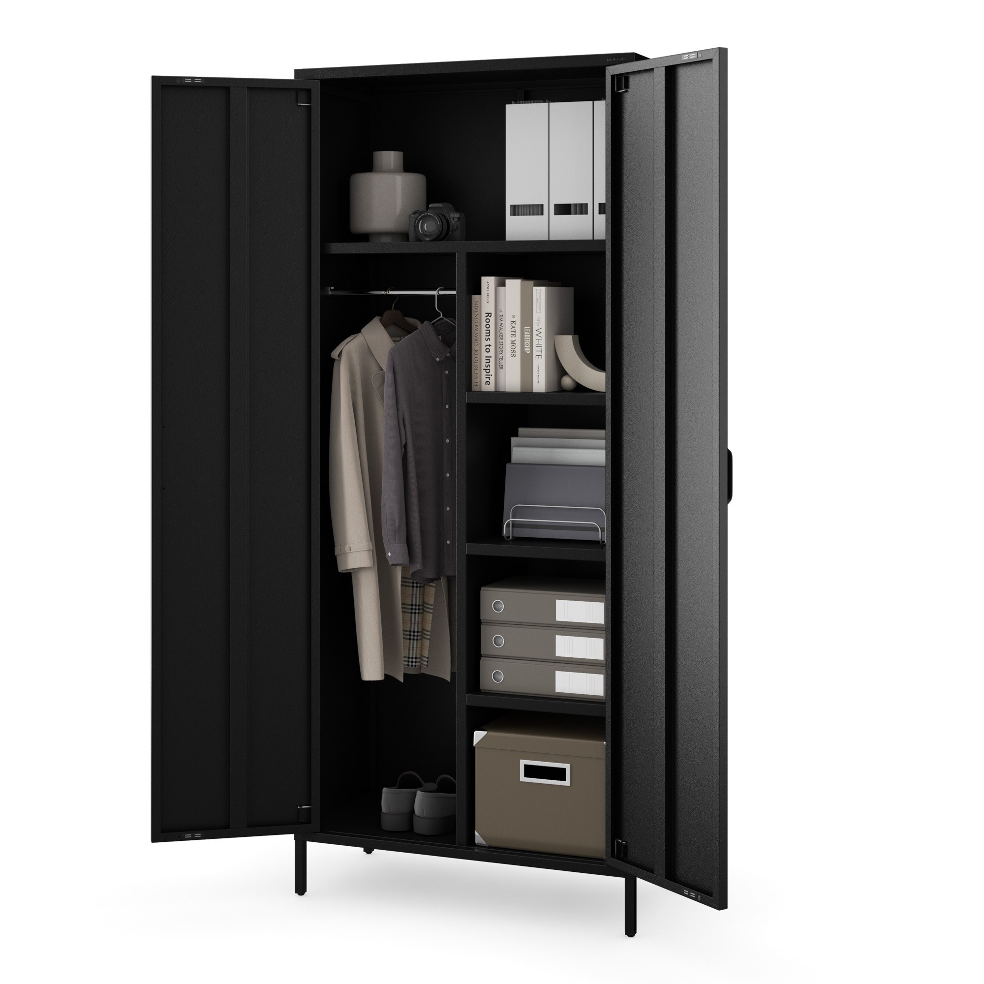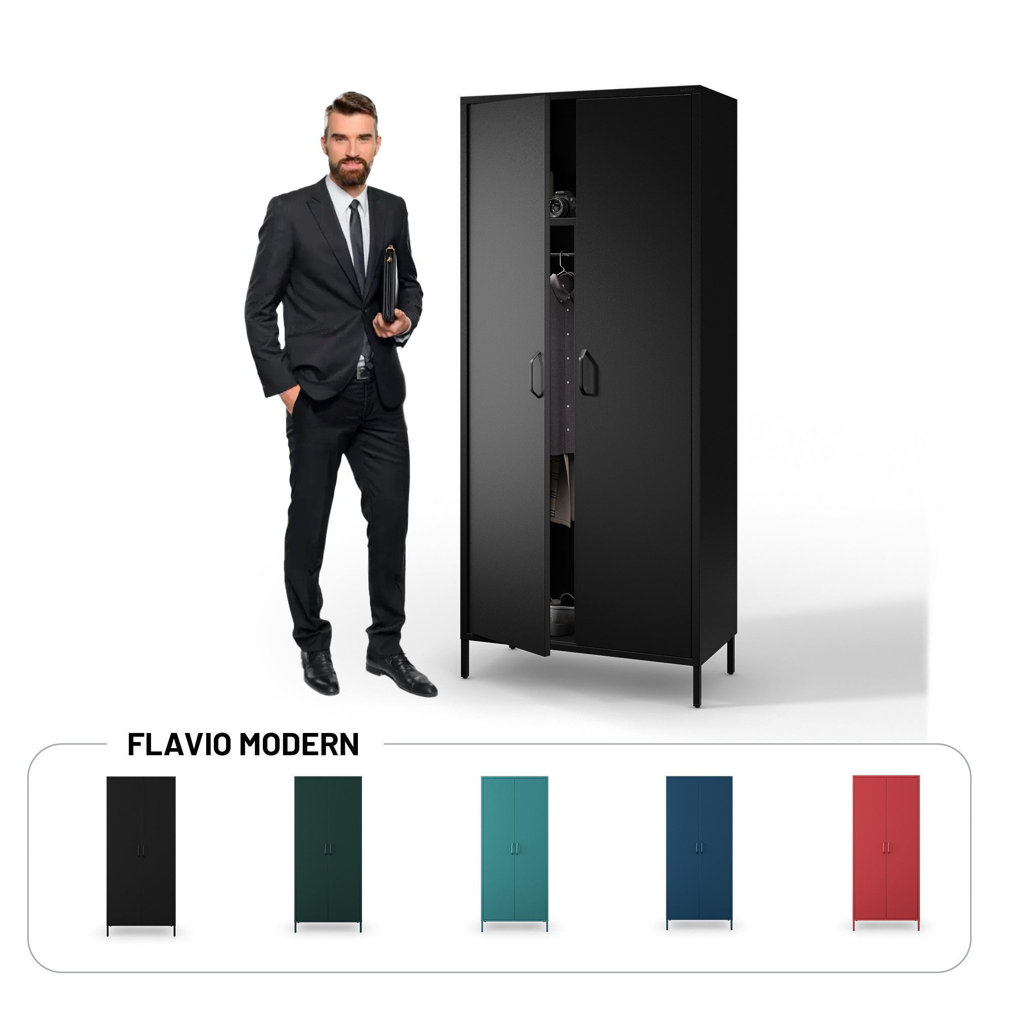 Kovová šatní skříň loftová černá: Modern FLAVIO 800 x 1850 x 450 mm