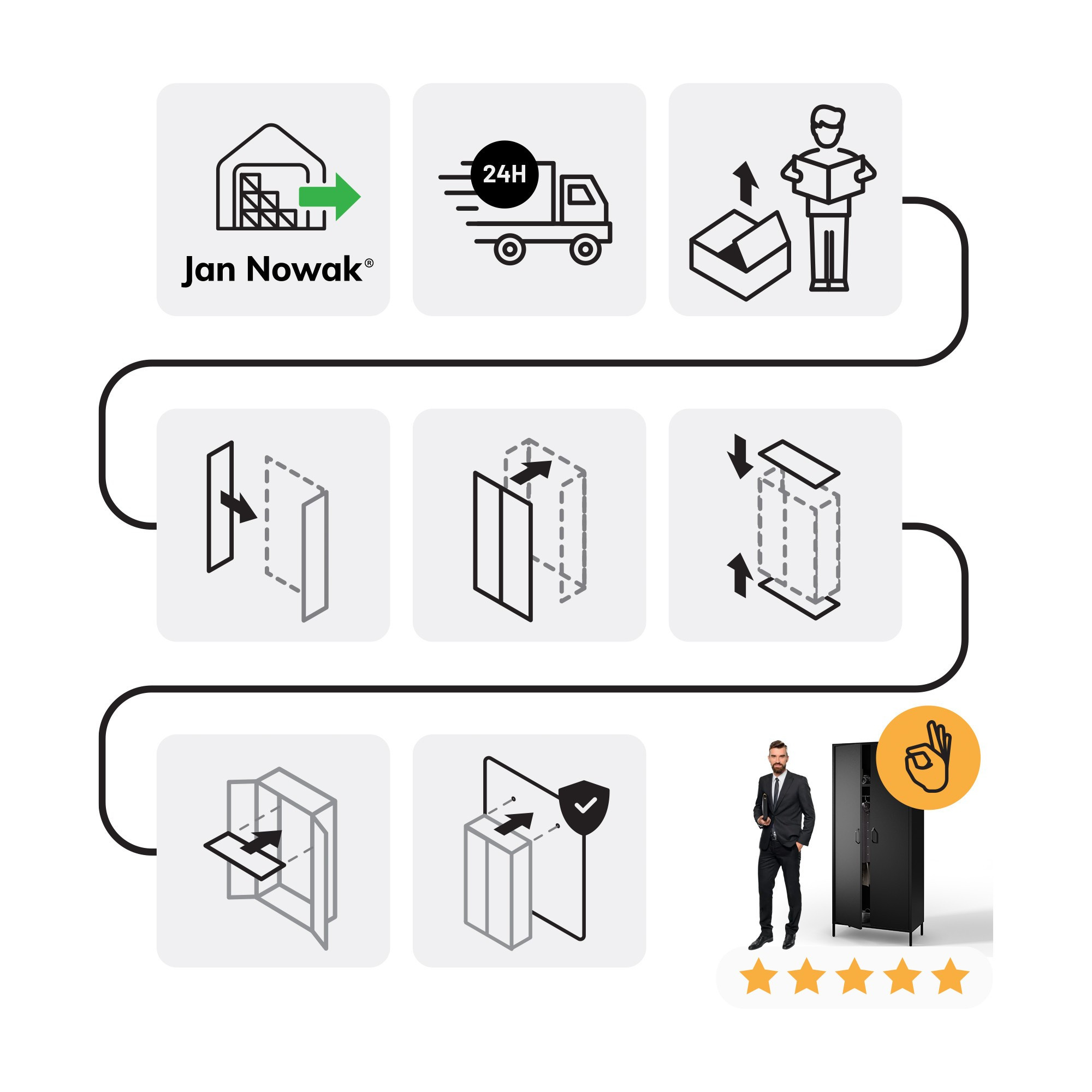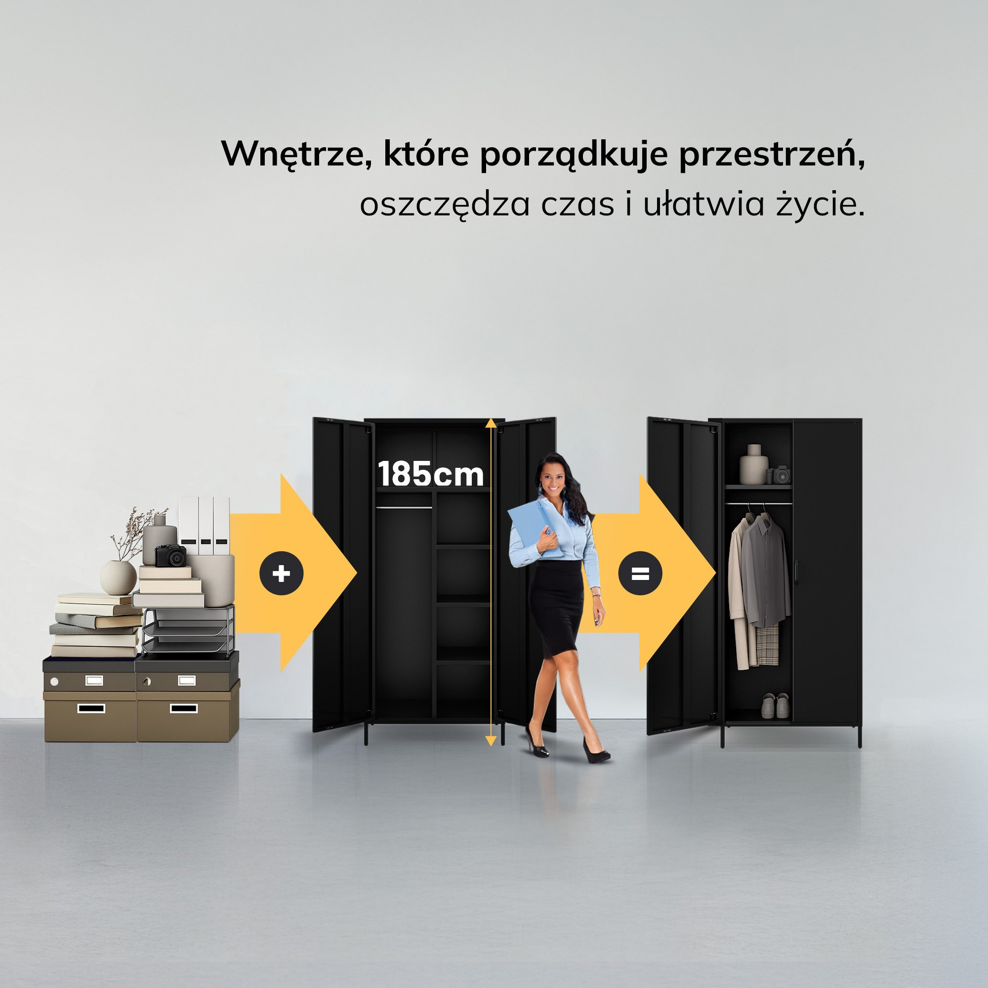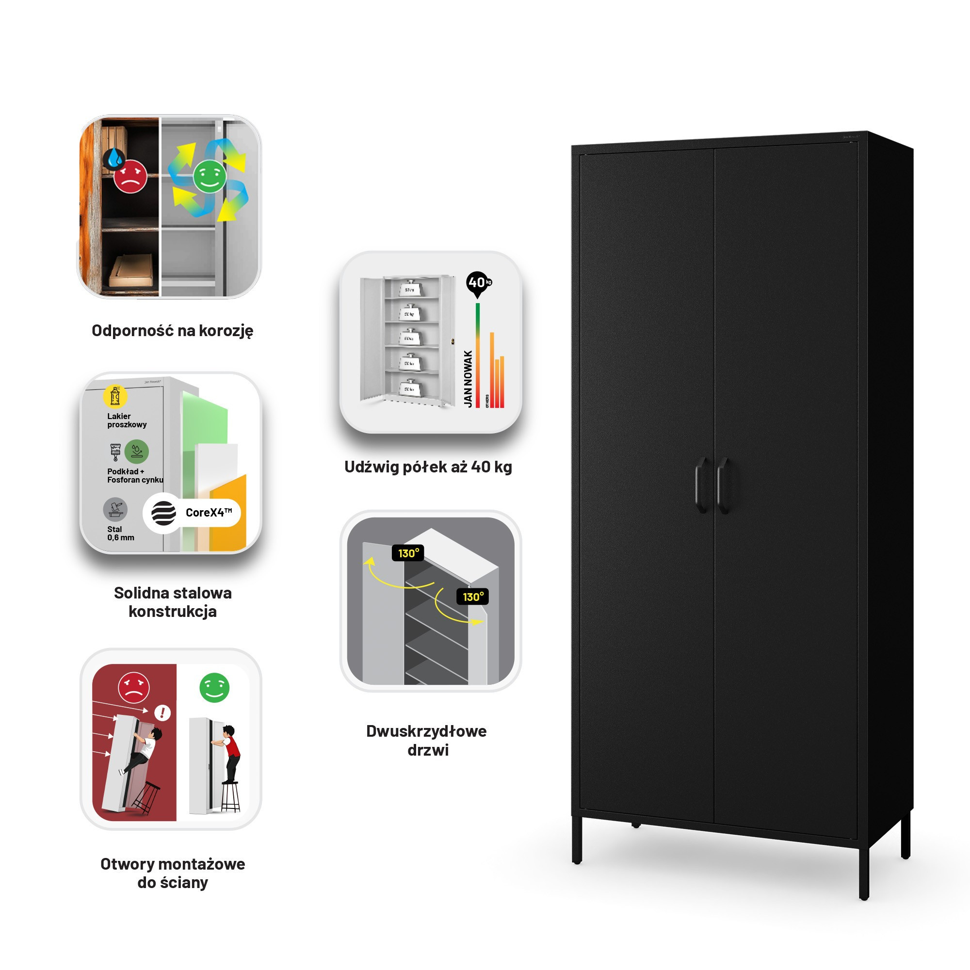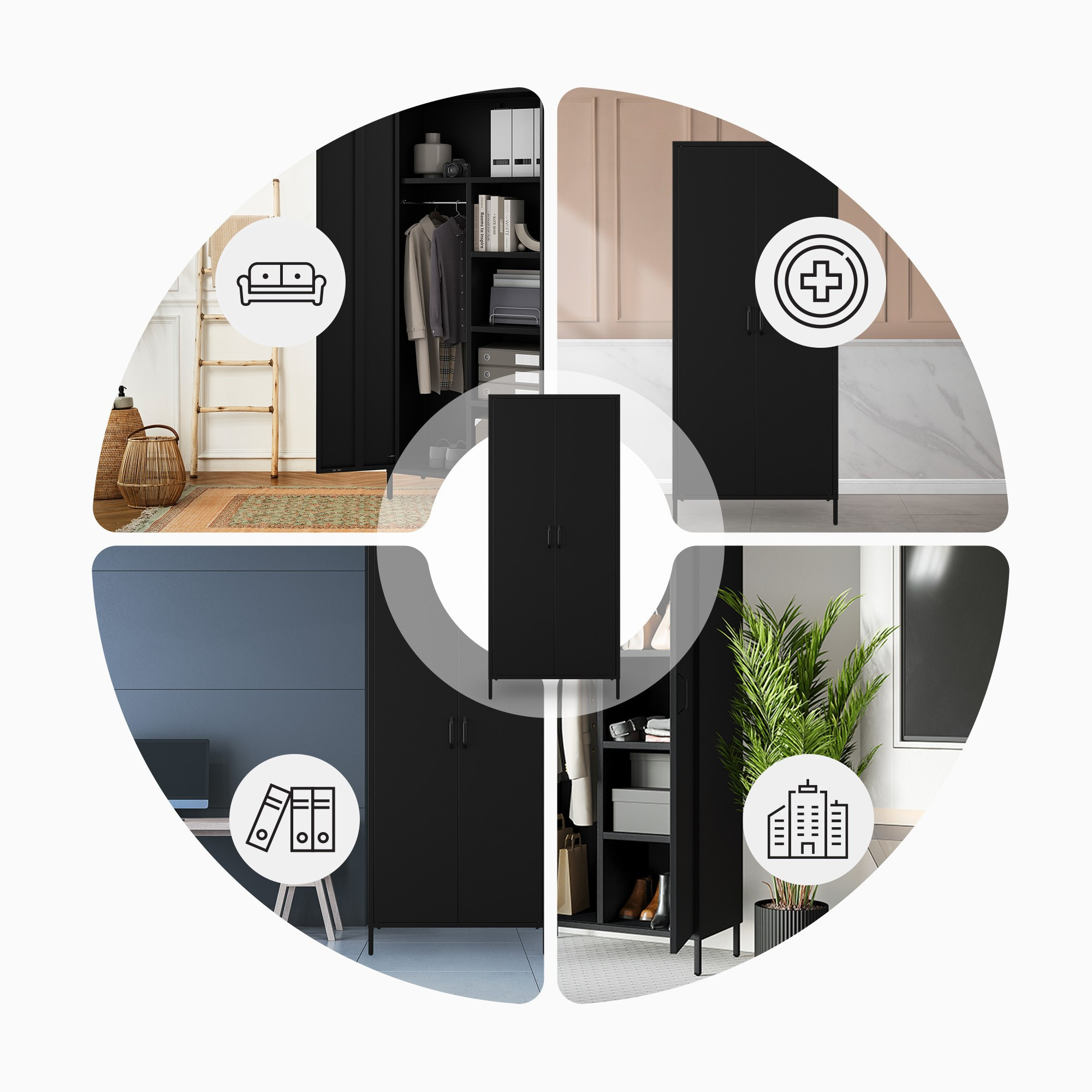 Kovová šatní skříň loftová černá: Modern FLAVIO 800 x 1850 x 450 mm