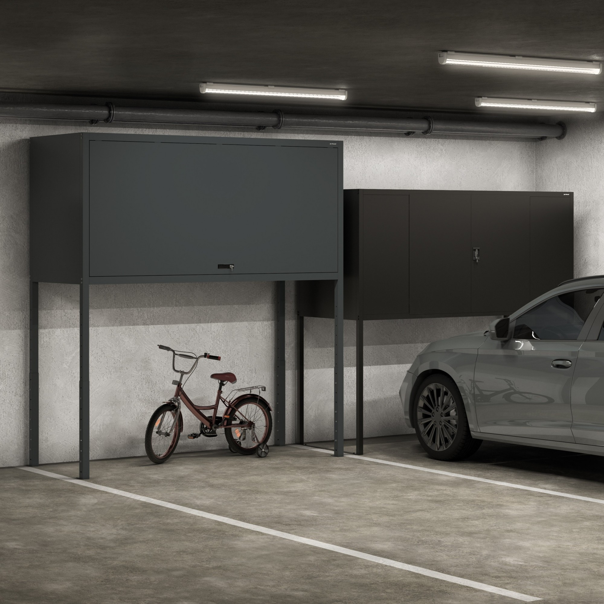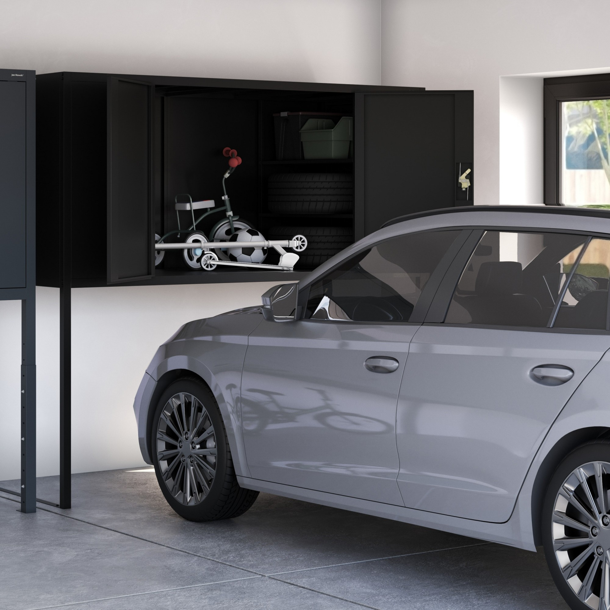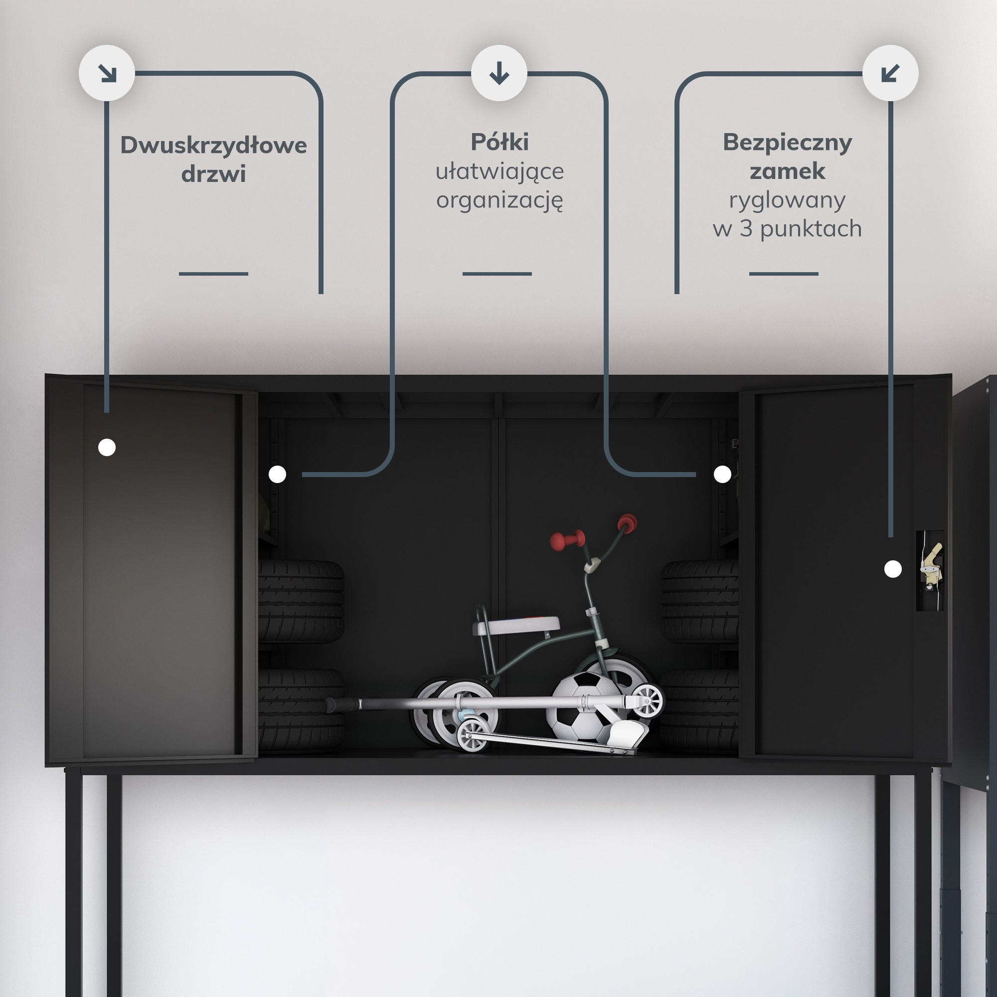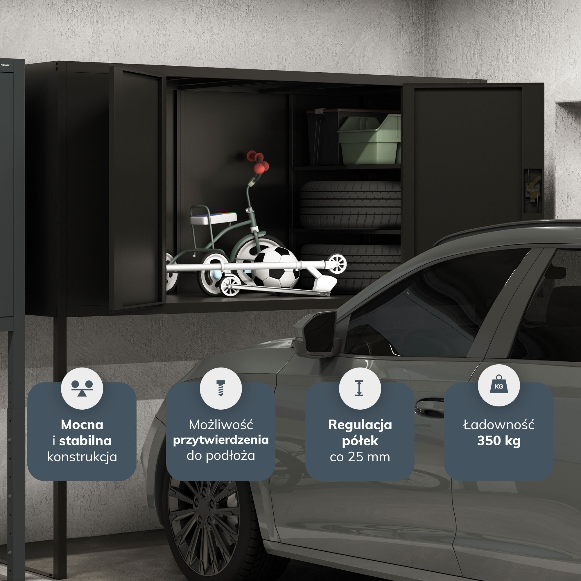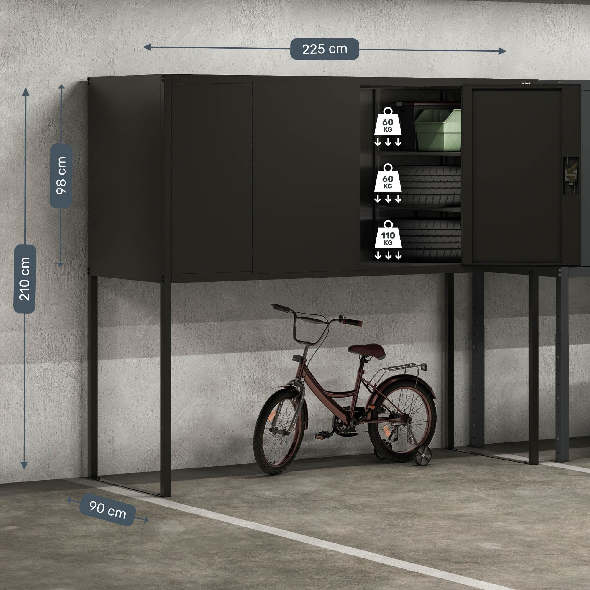 Kovová skříň do garáže GEORGE, 2250 x 2100 x 900 mm, černá