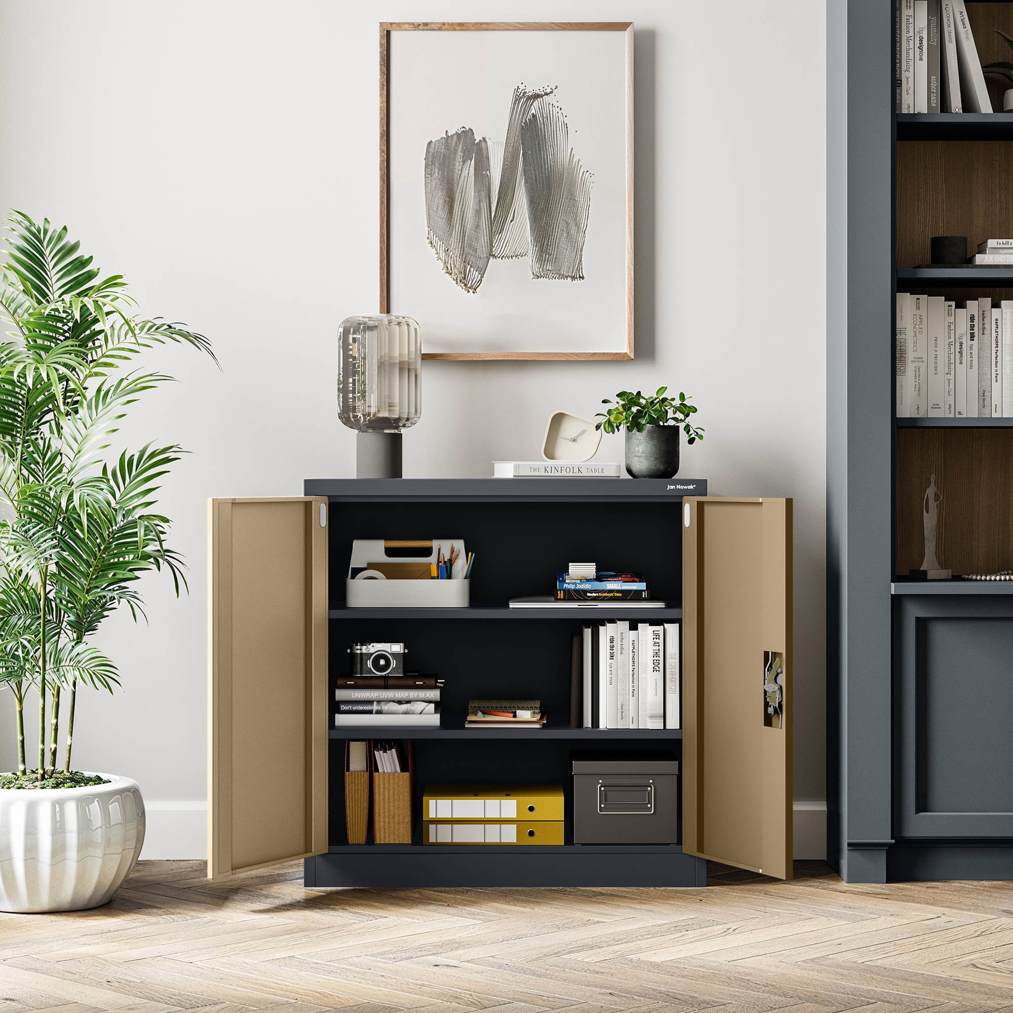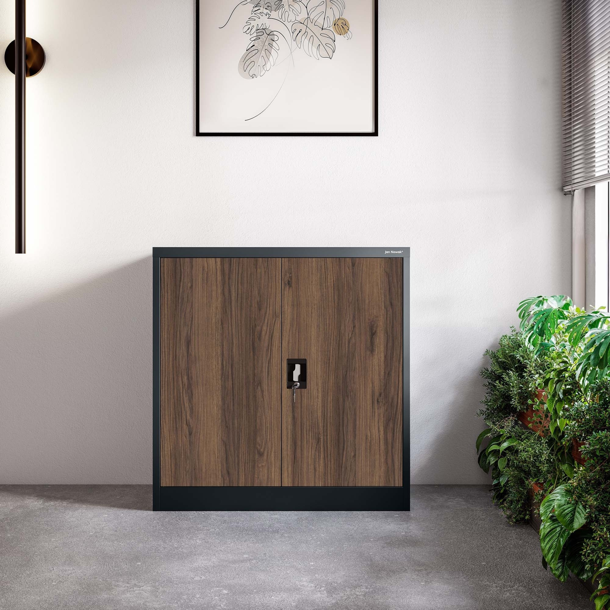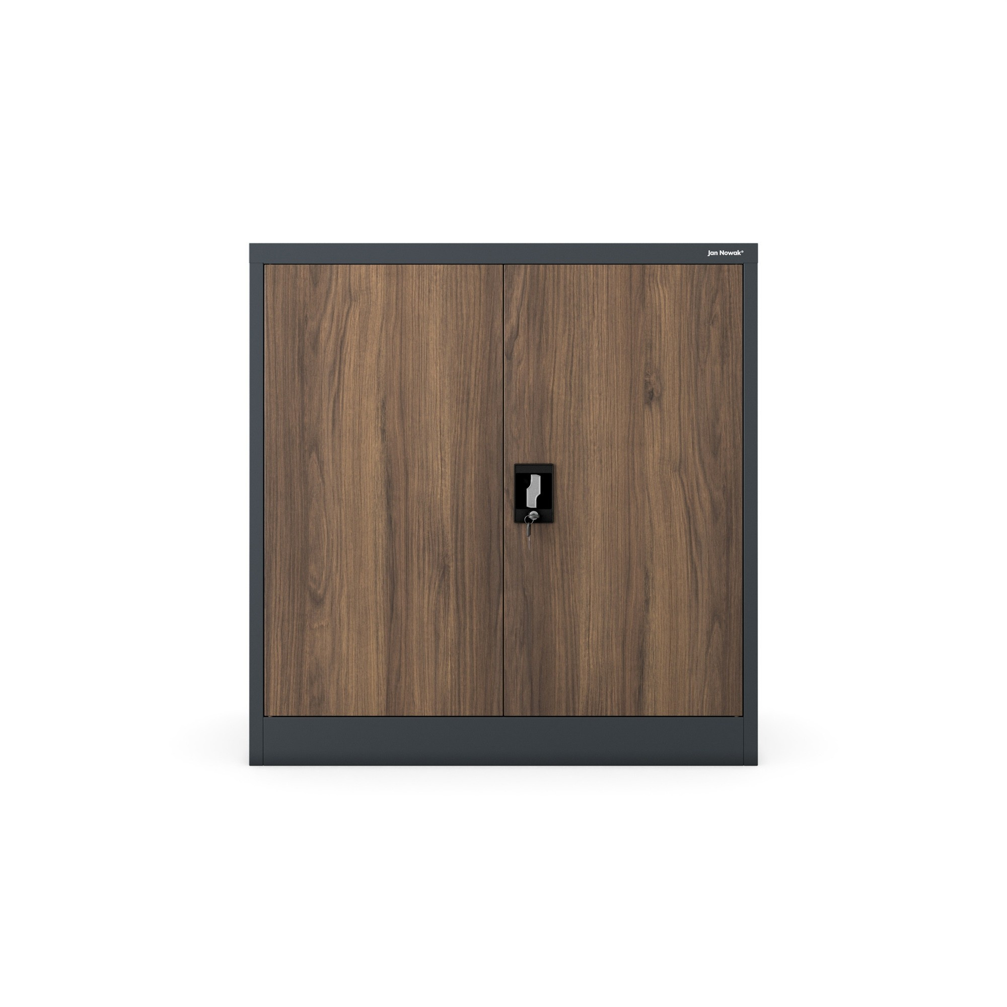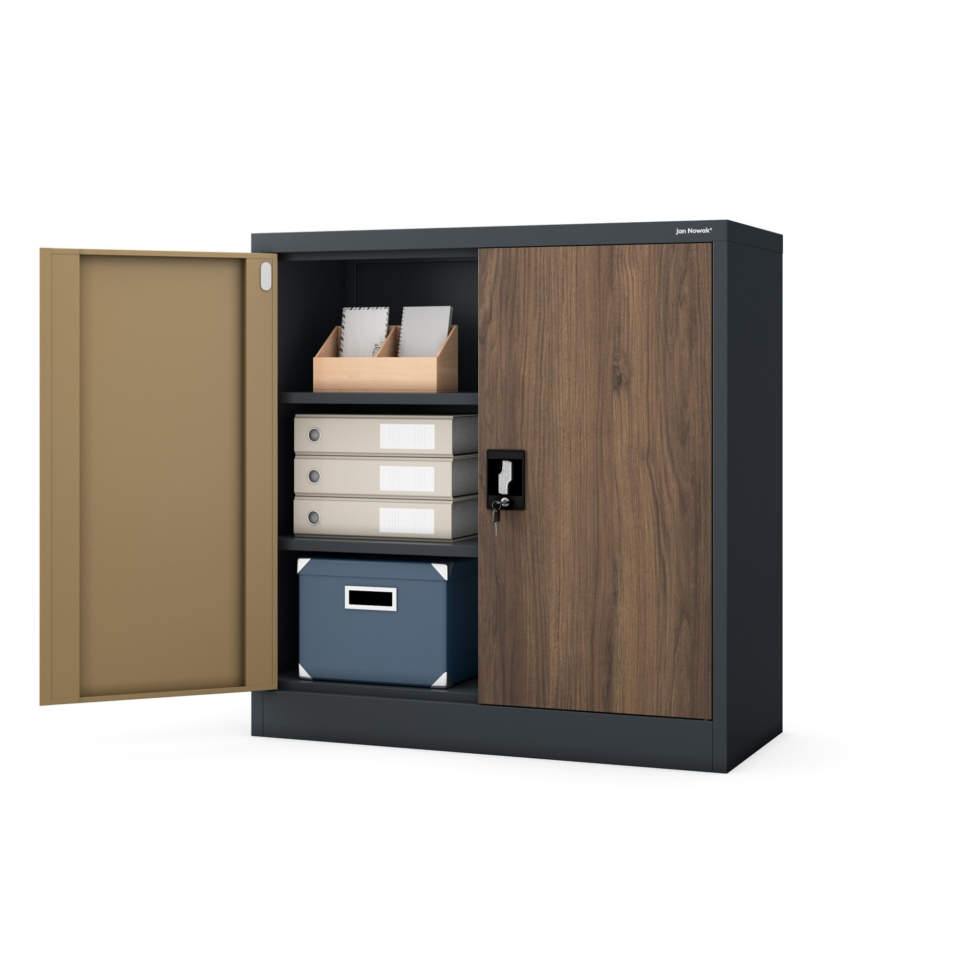 Kovová skříňka do kanceláře BEATA, 900 x 930 x 400 mm, Eco Design: antracitová/ořech