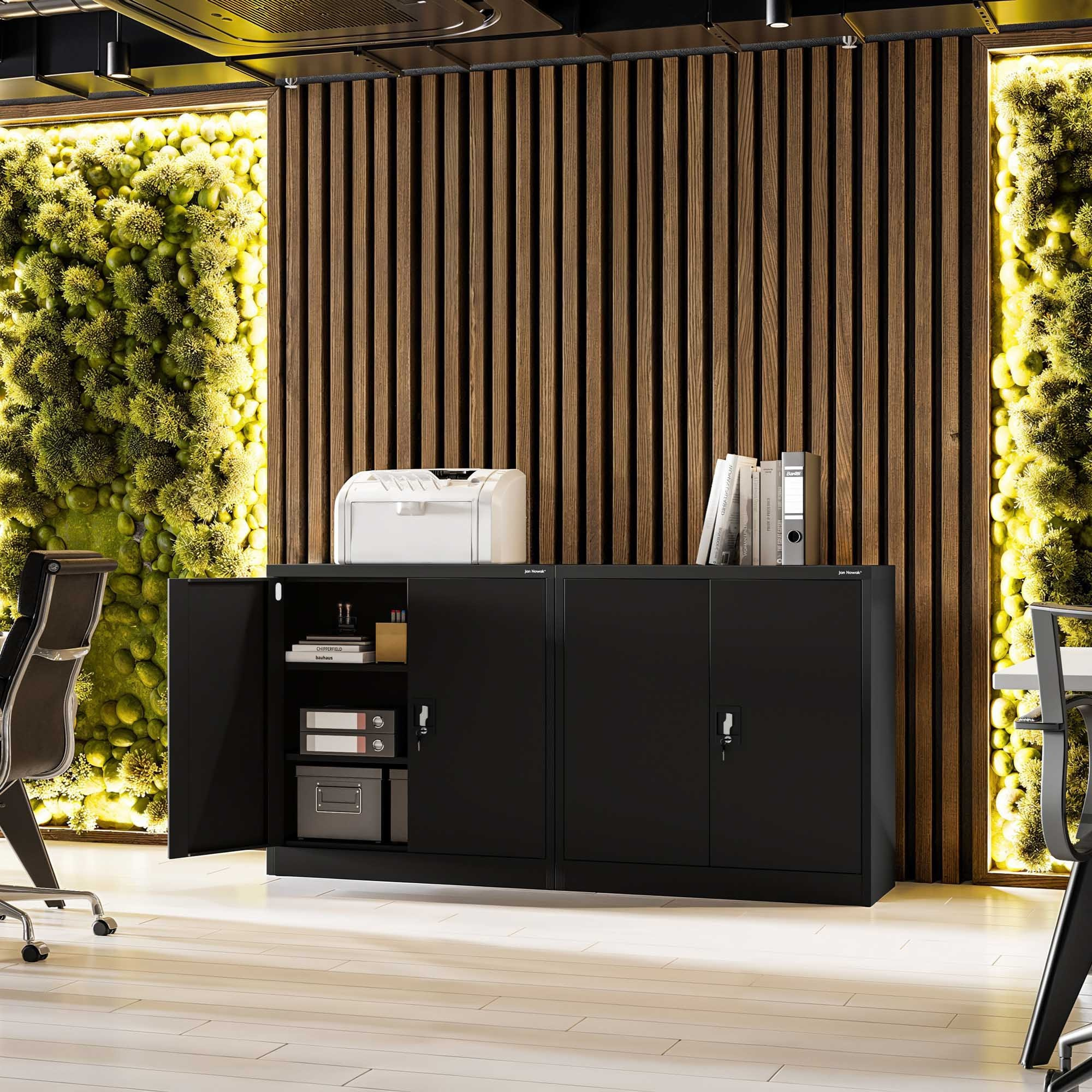 Kovová skříňka s dveřmi BEATA, 900 x 930 x 400 mm, černá