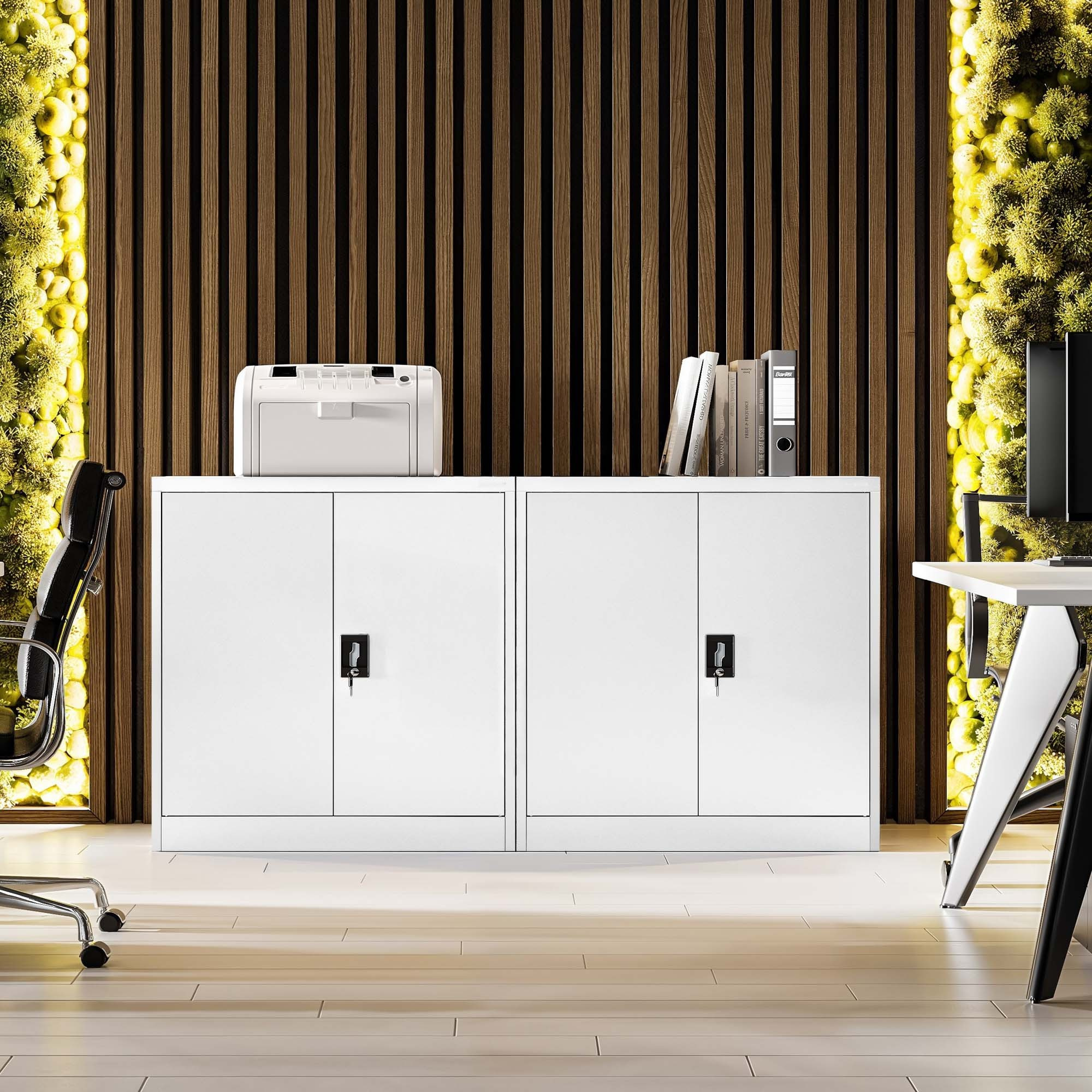 Malá kovová skříňka s policemi BEATA, 900 x 930 x 400 mm, bílá Kovová skříňka bílá BEATA nemá sobě rovnou, pokud jde o poměr malých vnějších rozměrů k obrovským možnostem skladování. Přispěla k tomu mimořádně odolná konstrukce vyrobená z práškově lakované oceli o tloušťce 0,6 mm. Správnou organizaci uložených předmětů zajišťují dvě nastavitelné police, které spolu s dnem kovové skříňky tvoří tři prostorné úrovně.Bílá skříňka s policemi BEATA se vejde i do nejmenšího prostoru, je odolná, prostorná a elegantně se prezentuje. Splňuje všechna kritéria, která se kladou na ocelový nábytek.Kovová skříňka je ideálním řešením pro: kanceláře, archivy, úřady, školy, nemocnice, lékařské ordinace, polikliniky, kosmetické salony, kadeřnictví, SPA, dílny a sklady. Kovová skříňka BEATA – malá skříňka pro velké věci! Ačkoli má bílá skříňka s policemi pouhých 93 cm na výšku a 90 cm na šířku, pohodlně v ní uložíte až 25 standardních pořadačů. Tajemství spočívá v použité oceli pro výrobu. Tloušťka stěny 0,6 mm stačí k tomu, aby konstrukce vynikala vysokou pevností, a na druhé straně prakticky vůbec neomezovala prostor uvnitř.Malá kovová skříňka BEATA je vybavena systémem nastavení polic, který umožňuje přizpůsobit nábytek vašim individuálním potřebám. Změna výšky je mimořádně rychlá a zvládne ji každý. Co je důležité, na polici umístíš předměty o maximální, celkové hmotnosti 50 kg.Bílá skříňka s policemi - důvěryhodná. Nábytek do kanceláře vyrobený z oceli je osvědčené a trvanlivé řešení. Dokonale se hodí i do místností, kde je intenzivní provoz a existuje velké riziko vzniku mechanických poškození. Bílá kovová skříňka BEATA je navíc pokryta práškovou barvou. Díky tomu jsme zvýšili její odolnost, odolnost proti poškození a korozi. Snadno se udržuje v čistotě, stačí jednou za čas otřít povrch vlhkým hadříkem s detergentem.V kovové skříňce BEATA uložíš nejdůležitější dokumenty a předměty. Všechny věci uvnitř budou v bezpečí díky pevnému zámku, který je zajištěn ve třech bodech. K šatní skříni přikládáme dva klíče. Přizpůsobili jsme bílou skříňku BEATA aktuálním předpisům týkajícím se uchovávání osobních údajů GDPR 2018. Bílá skříňka s policemi BEATA ti bude sloužit po mnoho let. Kovový nábytek je vyráběn s největší pečlivostí a k jeho výrobě používáme komponenty vysoké kvality. Potvrzuje to mimořádně dlouhá záruka, kterou poskytujeme až na 6 let. Kovová skříň má certifikát PZH, je bezpečná pro vás i životní prostředí.Bílá kovová skříňka BEATA v kostce: výška: 93 cm šířka: 90 cm hloubka: 40 cm hmotnost: 24 kg barva: bílá, RAL 9003 maximální zatížení 200 kg dvě nastavitelné police konstrukce z oceli s práškovým lakováním produkt vyžaduje vlastní montáž, pro hladký průběh práce použijte papírový návod nebo video verzi na stránce