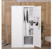 - Praktické zónování: Skříň je chytře rozdělena na několik zón, které vám umožní efektivně uspořádat různé typy úklidových pomůcek.