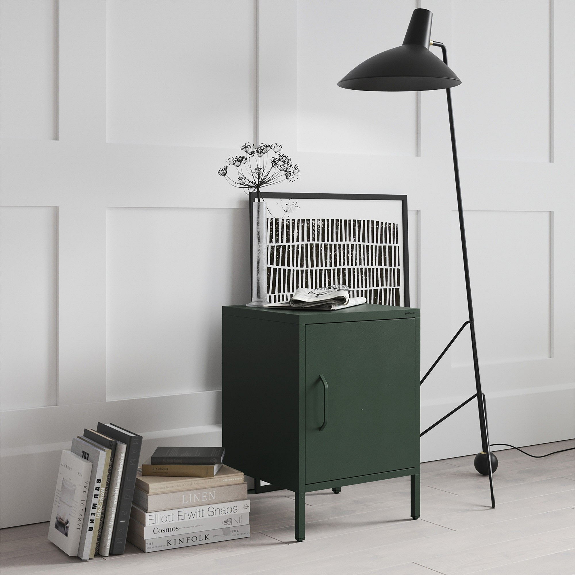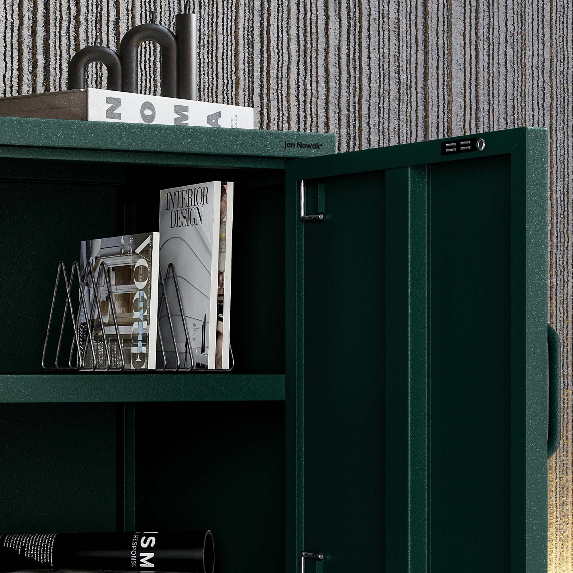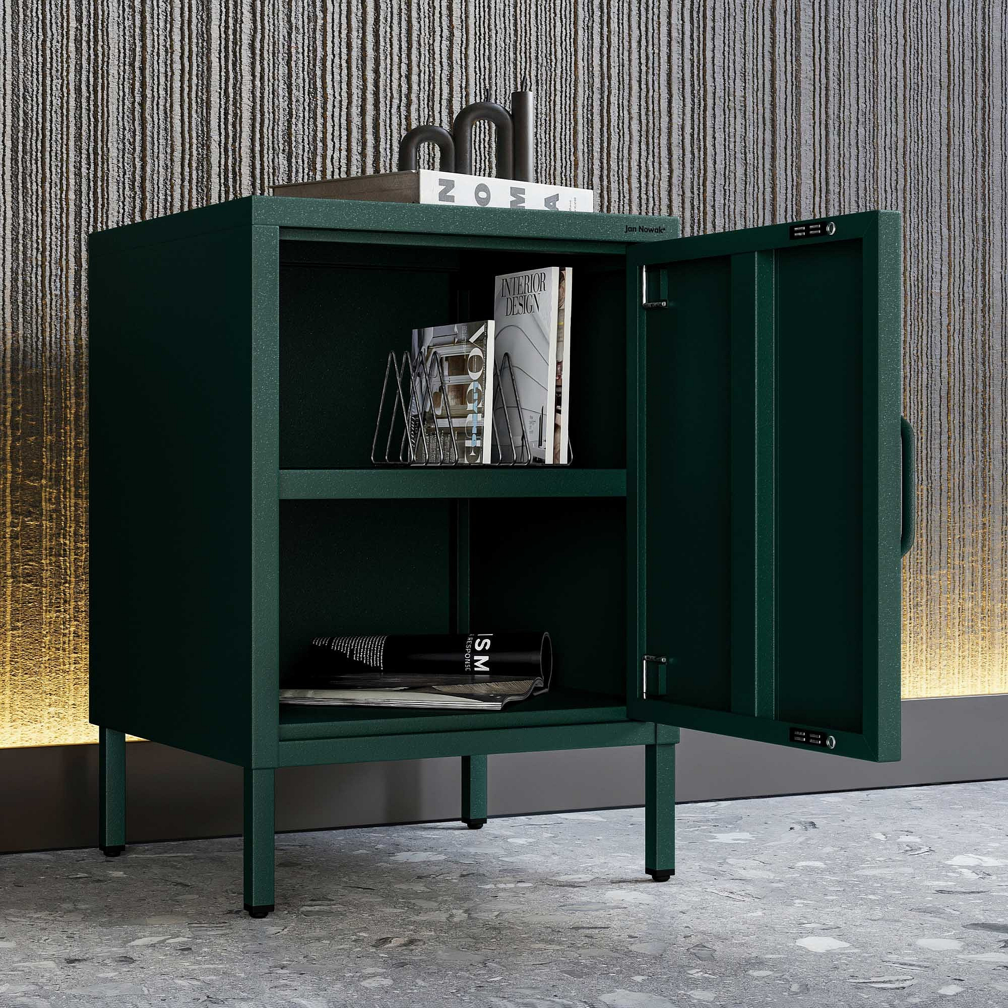 Kovový noční stolek lahvově zelený Modern MIA, 424 x 595 x 400 mm
