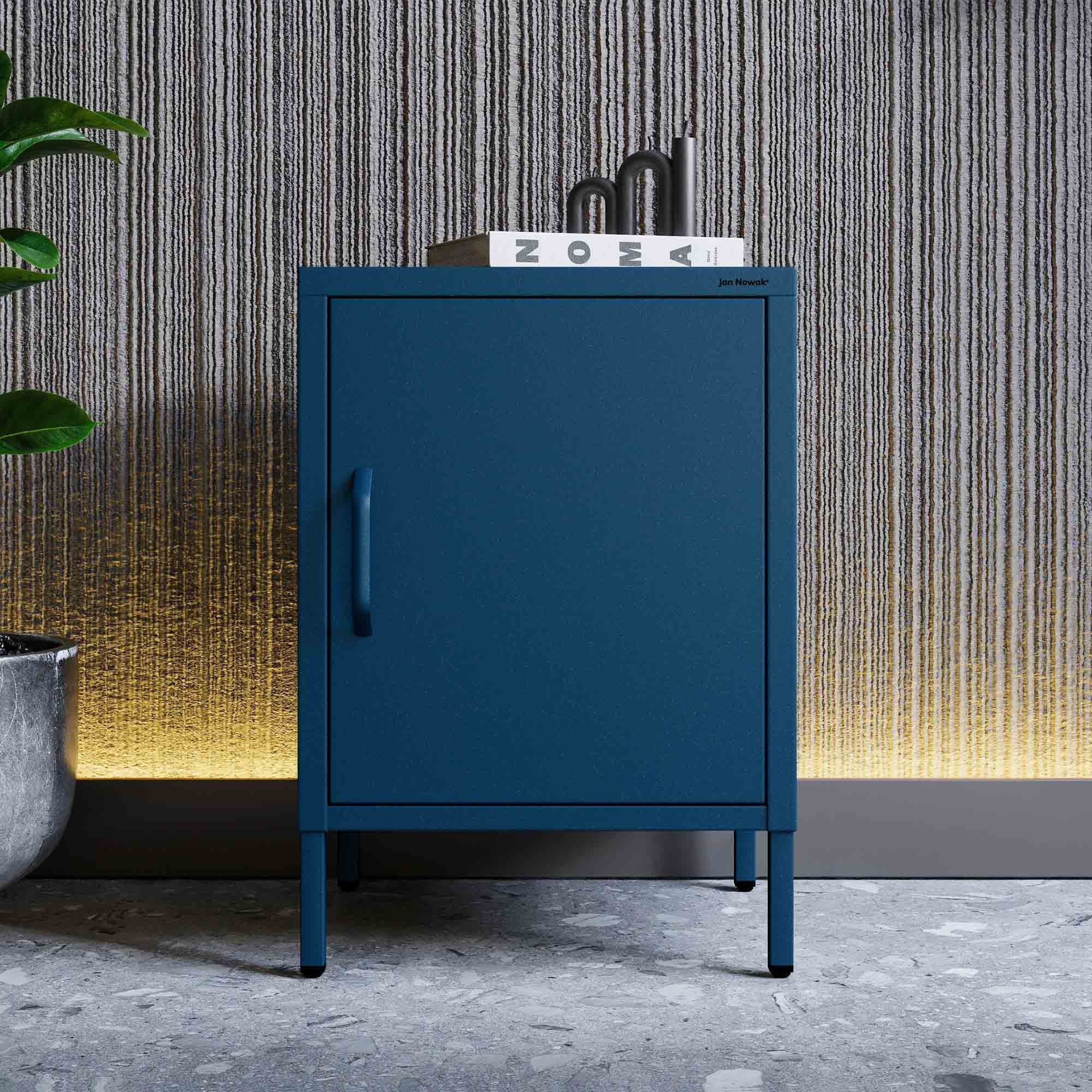 Kovový noční stolek modrý Moderní MIA, 424 x 595 x 400 mm