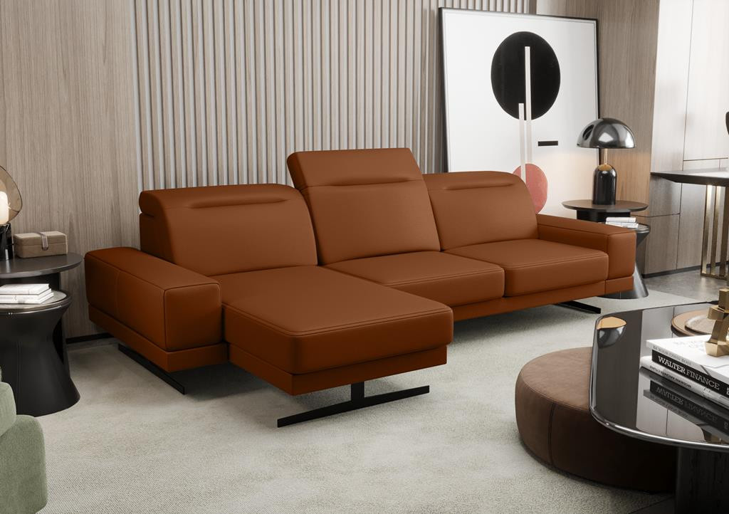 Rohová Kožená sedací souprava FIORE MINI 265x180 cm - hnědá , levá