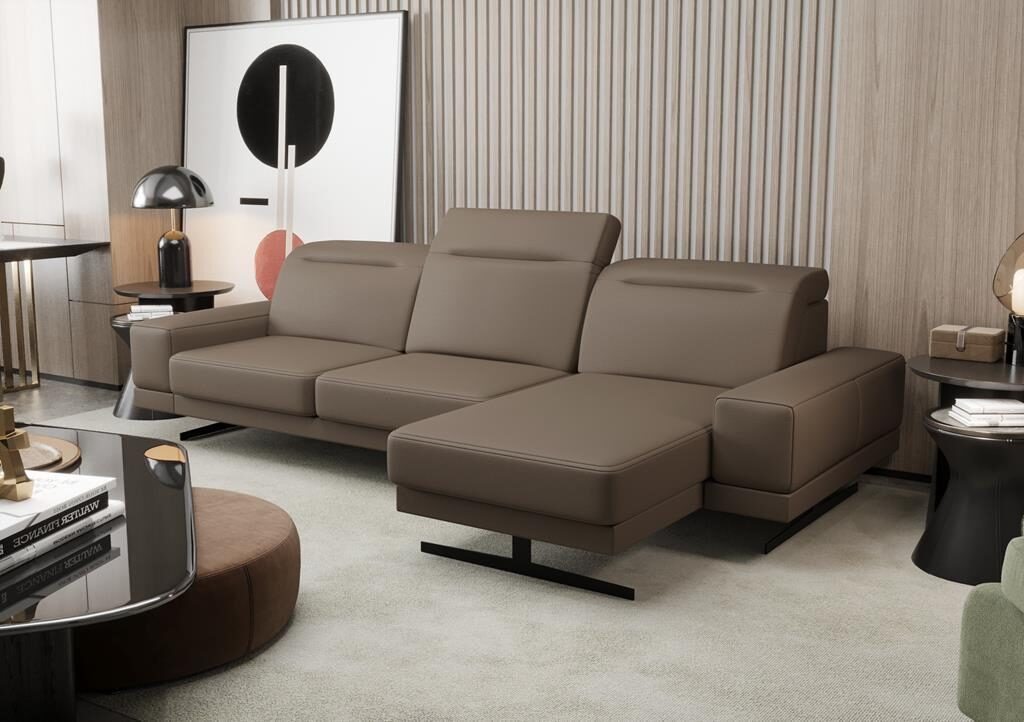 Rohová Kožená sedací souprava FIORE MINI 265x180 cm - hnědá , pravá