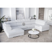 Rohová Kožená sedací souprava s funkcí spaní ROYAL MAX I 210x375x185 - Levá strana, Bílá kůže