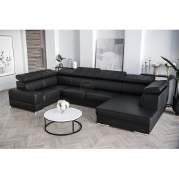 Rohová Kožená sedací souprava s funkcí spaní ROYAL MAX I 210x375x185 - Levá strana, černá kůže