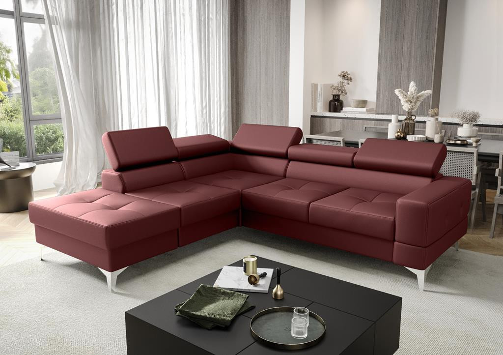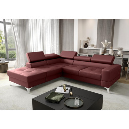 Rohová Kožená sedací souprava s funkcí spaní TOSCANIA II průměr 30x250 - červená , levá