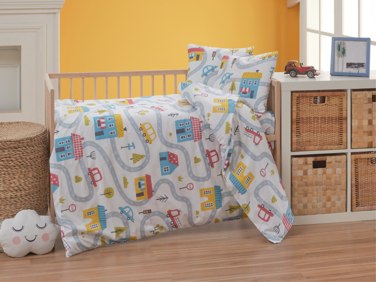 Krepové dětské povlečení 140x200, 70x90cm Městečko