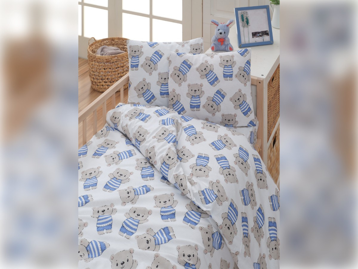 Krepové dětské povlečení do malé postýlky 90x135, 45x60 cm Medvídek nitěný knoflík