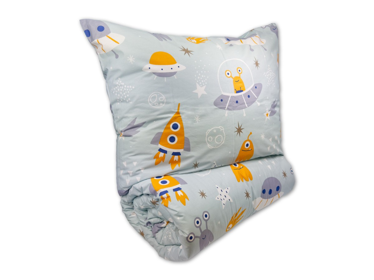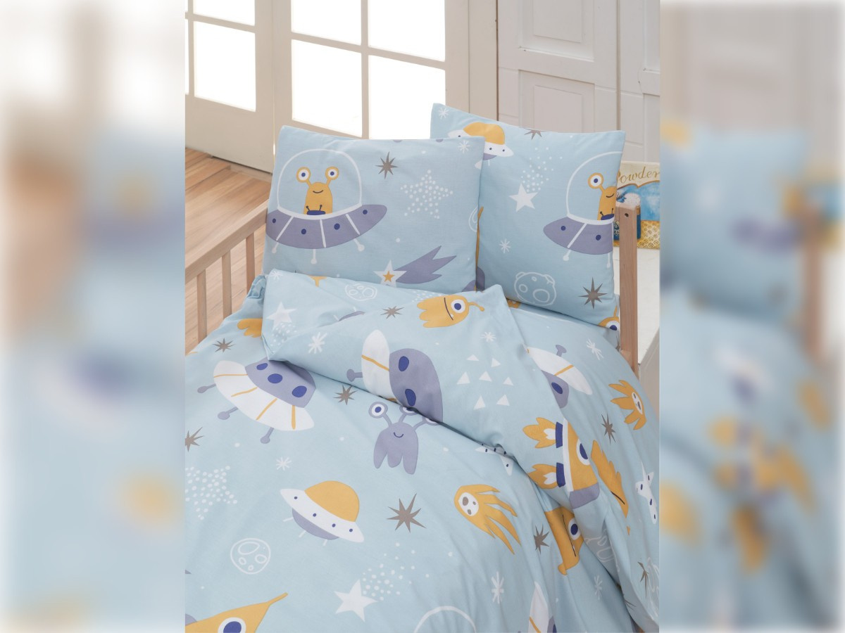 Krepové dětské povlečení do malé postýlky 90x135, 45x60 cm Vesmírné UFO zipový uzávěr