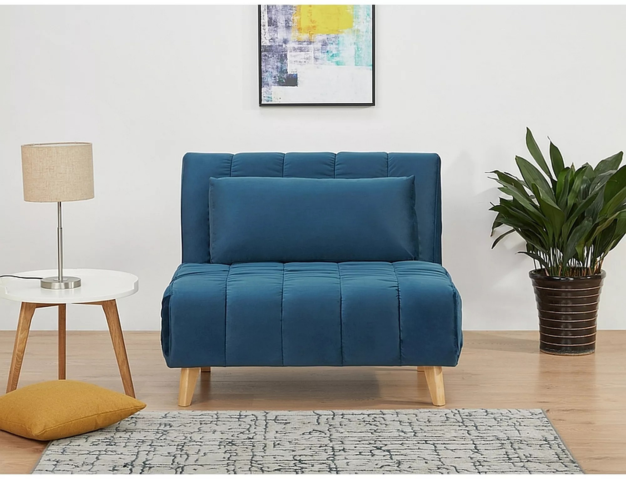 Rozkládací křeslo BILLY Velvet, Modrý Aksamit 188/buk
