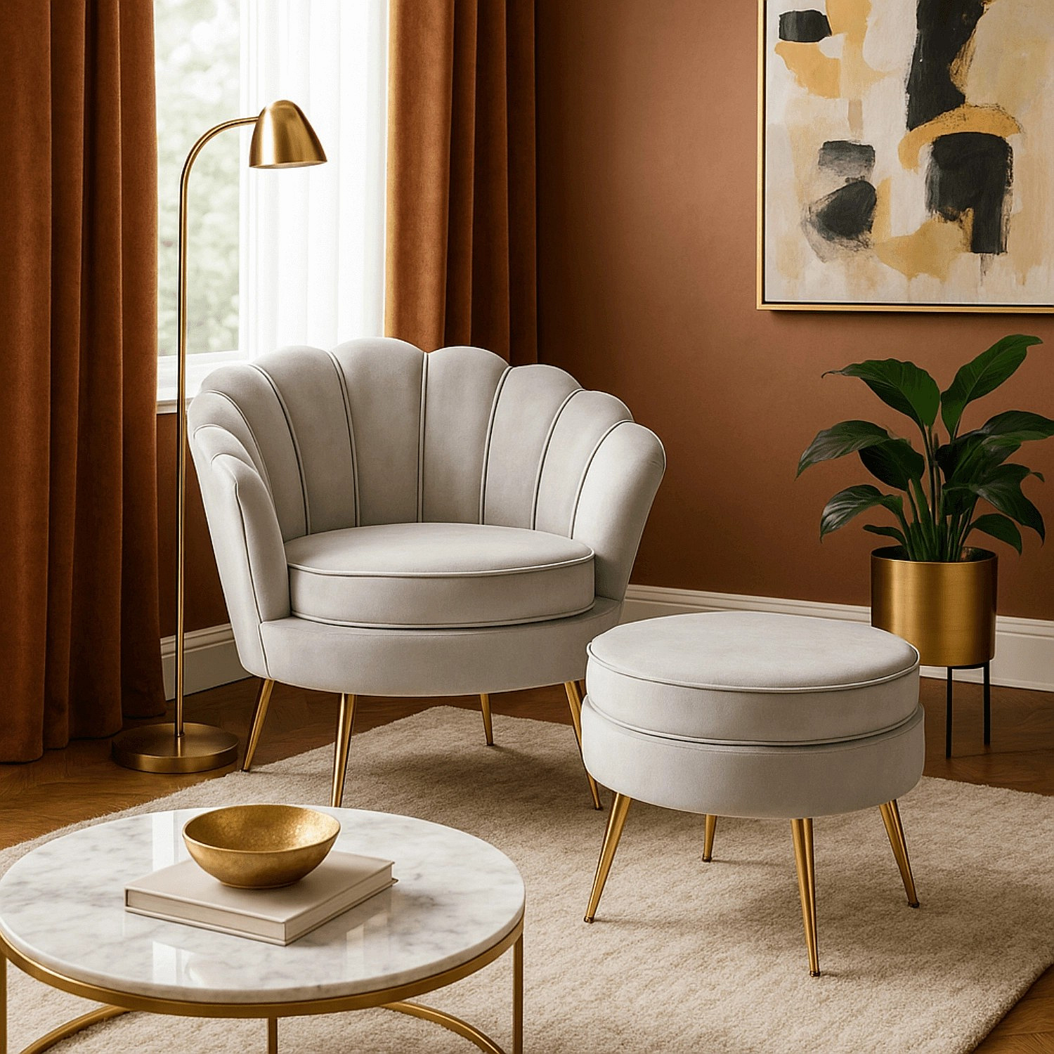 Křeslo GRAND s podnožkou Šedý sametový