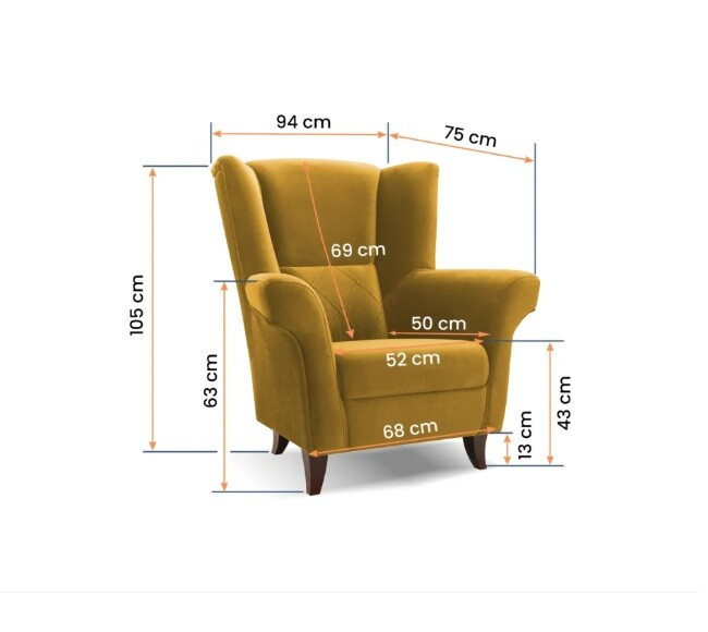 Křeslo je vyrobeno z kombinace kvalitního potahu a dřeva, což zajišťuje jeho dlouhou životnost a odolnost. Potah Bluvel 68 je nejen příjemný na dotek, ale také snadno udržovatelný, což oceníte zejména v domácnostech s dětmi nebo domácími mazlíčky.