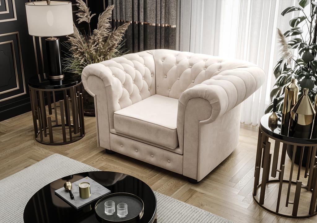 Manchester je rodina nábytku v anglickém stylu, která se vyznačuje hlubokým prošíváním s dokončením knoflíkem nebo krystalem. Kolekce se skládá z pohovek vybavených funkcí spaní nebo bez ní, a také z křesel a pufů. Na půvabu jí dodávají také dřevěné, ručně malované nožky.