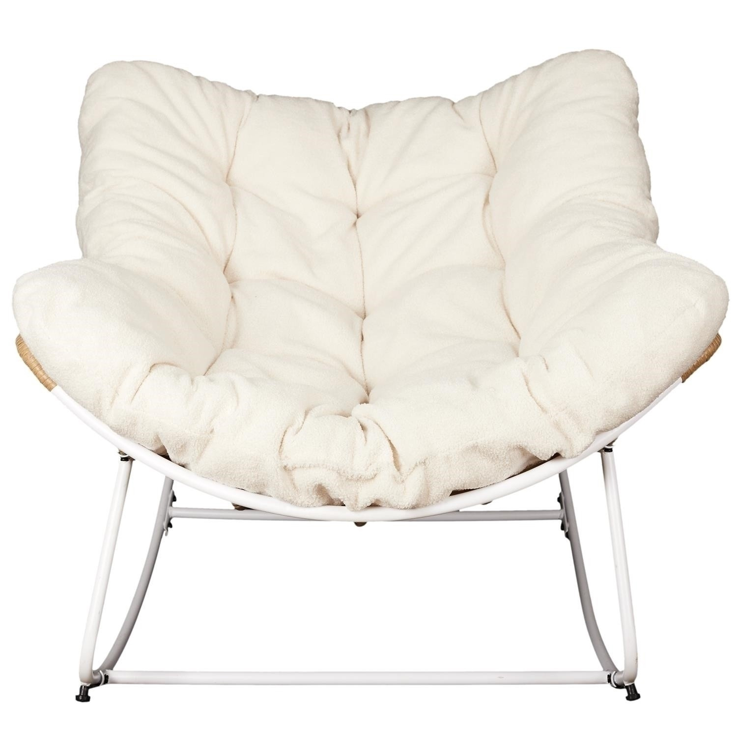 Křeslo Odin je pohodlný nábytek na kovových ližinách, které umožňují komfortní odpočinek při jemném houpání. Sedák křesla byl vyroben z pleteného, umělého ratanu. pletené sedátko ve tvaru mušle. Sedák byl vybaven polštářem. Měkký, nadýchaný polštář potažený krémovou látkou teddy bear je módním prvkem nábytku. Polštář byl vyplněn měkkou čalounickou pěnou. Hmotnost křesla je 12,5 kg. Rozměry kartonu: 97x65x40 cm. Maximální zatížení 110 kg. Fote vyžaduje samostatnou montáž