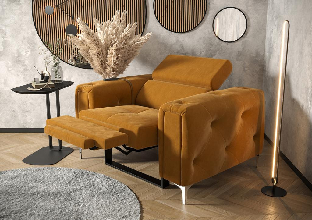 Kolekce čalouněného nábytku Orion je něco, co nikde jinde nenajdete! Charakteristickým prvkem jsou krásně zdobené, prošívané boky ve stylu glamour. Kromě estetických prvků stojí za to věnovat pozornost dokončení v podobě nastavitelných opěrek hlavy, které usnadní přizpůsobení výšky opěradla tak, aby byla pro vás ideální. Vysoké 13 cm kovové nohy podtrhují celek a dodávají konstrukci lehkost.