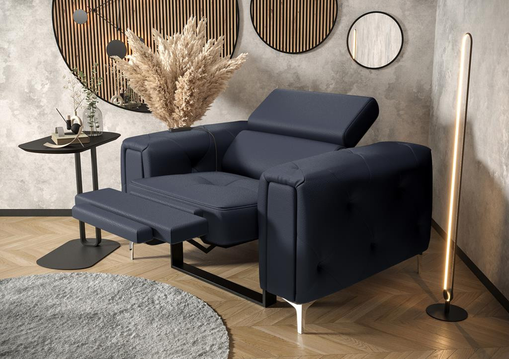 Kolekce nábytku Orion je něco, co nikde jinde nenajdete! Charakteristickým prvkem jsou krásně zdobené, prošívané boky ve stylu glamour. Kromě estetických prvků stojí za to věnovat pozornost dokončení v podobě nastavitelných opěrek hlavy, které usnadní přizpůsobení výšky opěradla tak, aby byla pro vás ideální. Vysoké 13 cm kovové nohy podtrhují celek a dodávají konstrukci lehkost.