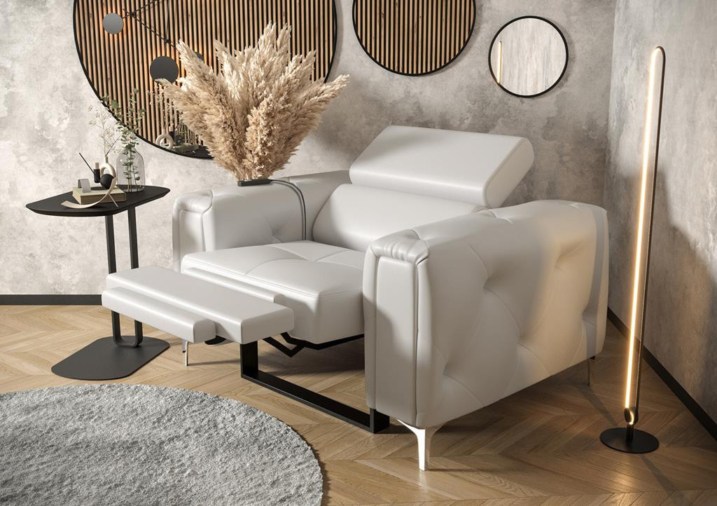 Kolekce nábytku Orion je něco, co nikde jinde nenajdete! Charakteristickým prvkem jsou krásně zdobené, prošívané boky ve stylu glamour. Kromě estetických prvků stojí za to věnovat pozornost dokončení v podobě nastavitelných opěrek hlavy, které usnadní přizpůsobení výšky opěradla tak, aby byla pro vás ideální. Vysoké 13 cm kovové nohy podtrhují celek a dodávají konstrukci lehkost.