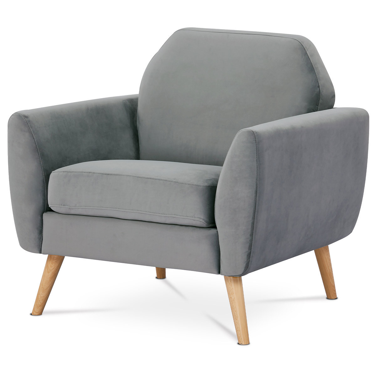 Luxusní křeslo v lehkém retro nádechu. Designovou kombinací oblých tvarů v kontrastu s rovnými tvary působí velmi zajímavě, masivně, ale zároveň i svěže. Křeslo je celočalouněné, lze ho použít ke klasickému přisazení ke stěně anebo umístit ve středu místnosti. V obou případech bude nepřehlédnutelný solitér, ale i jako doplňující křeslo či křesla k sedačce. Uplatnění najde jak v obývacím pokoji, hale, ale i ložnici nebo v konferenčních místnostech. Potah je ze sametové matné látky v trendy šedostříbrném odstínu, kostra z masivního borovicového dřeva a překližky. Výplň je z kvalitní PU pěny, která je zpevněna ocelovými vlnovci a textilními popruhy. Kónické nohy jsou netradičně vyrobené z velmi houževnatého a pevného plastu v povrchovém dekoru přírodního buku. Riziko poškození podlahových krytin je zde eliminováno plastovými kluzáky na dotykové ploše nohou. Světlá výška křesla je 20 cm, výška područek je 61 cm. Nosnost křesla výborných 120 kg. Křeslo má z transportních důvodu sklopný opěrák. Věříme, že tuto „funkci“ využijete i v běžném provozu. Kvalita, barevné provedení a dokonalost provedení ocení každý jeho vlastník, ale velmi potěší i příležitostné návštěvy. Pohodlí a vnitřní prostornost nedovolí toto křeslo bez otálení opustit. Designově se ke křeslu hodí sedačka ASB-014 SIL.