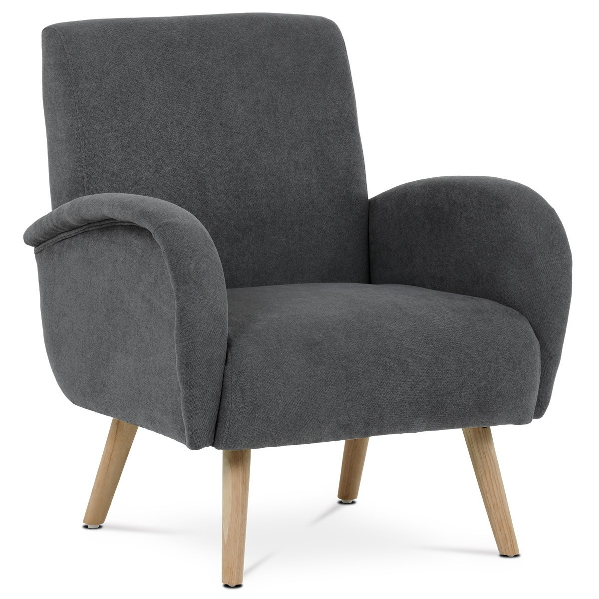 Křeslo relaxační, šedá látka, dřevěné nohy.