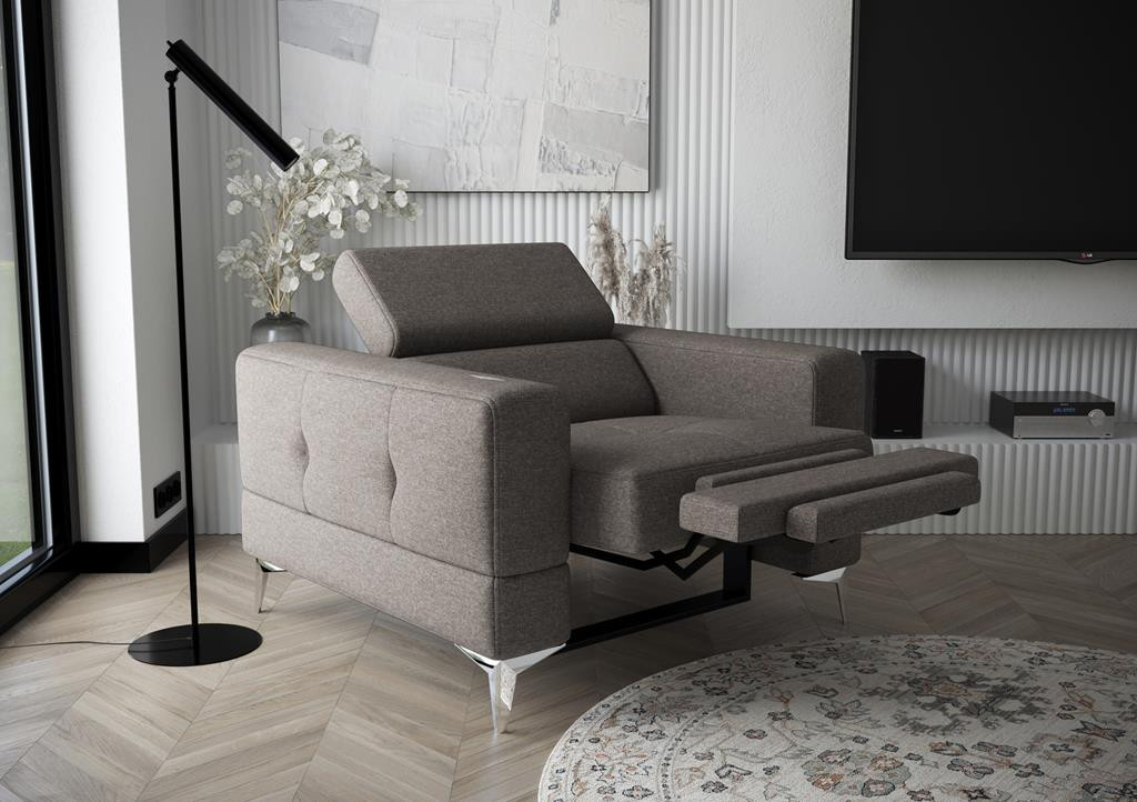 Křeslo Toscania relax bude ideálním doplňkem rohové sedačky nebo pohovky z kolekce Toscania. Celá kolekce se vyznačuje minimalistickým a nadčasovým designem. Ideální pro fanoušky minimalismu. Díky zachované klasické a jednoduché formě se bez problémů hodí do většiny interiérů. Stojí za to věnovat pozornost jemně zdobeným bokům, prošívaným sedákům a vysokým nohám, které celku dodávají lehkost. Vyberte druh materiálu a barvu z naší široké nabídky tkanin a my jej pro vás vyrobíme na zakázku.