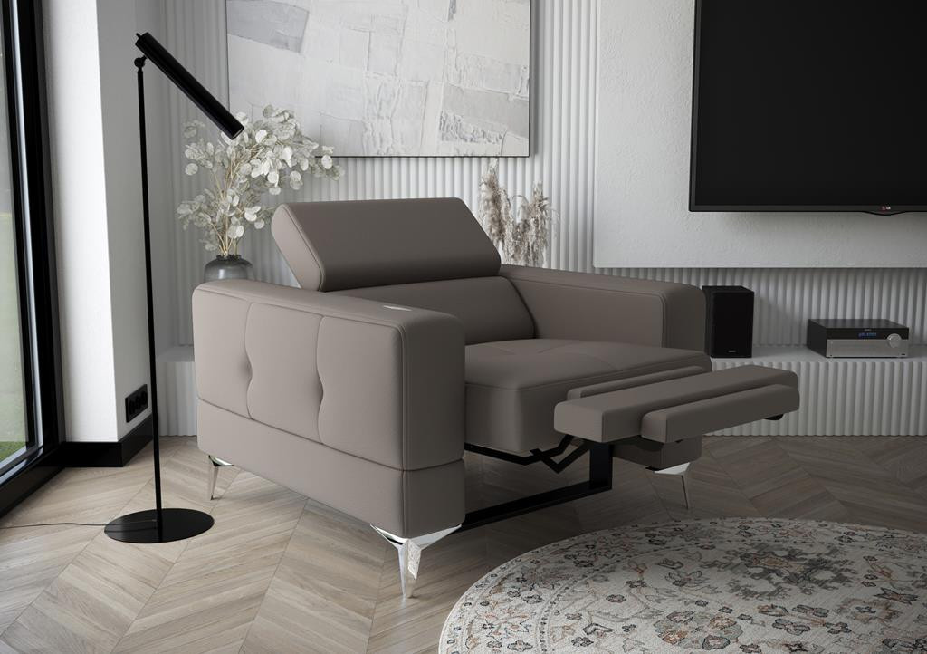 Křeslo Toscania relax bude ideálním doplňkem rohové sedačky nebo pohovky z kolekce Toscania. Celá kolekce se vyznačuje minimalistickým a nadčasovým designem. Ideální pro fanoušky minimalismu. Díky zachované klasické a jednoduché formě se bez problémů hodí do většiny interiérů. Stojí za to věnovat pozornost jemně zdobeným bokům, prošívaným sedákům a vysokým nohám, které celku dodávají lehkost.