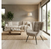Křeslo ušák v barvě coffee nabízí komfortní posezení díky vysokému polstrování sedáku i opěradla, které je potažené prémiovou látkou příjemnou na dotek. Pevné kovové nohy v matné černé barvě zajišťují stabilitu a dlouhou životnost, zatímco integrované područky přispívají k pohodlí při sezení. Design křesla kombinuje klasický tvar ušáku s moderním minimalistickým provedením, což umožňuje jeho snadné začlenění do různých interiérů. Díky kvalitnímu materiálu a ergonomickému tvaru je vhodné pro relaxaci i každodenní použití.