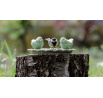 Zelené keramické pítko pro ptáčky ve tvaru pravidelného květu je nádhernou dekorací, která přitahuje pozornost nejen ptáčků, ale i všech kolemjdoucích a návštěvníků. Dva pěvci sedící na okraji pítka dodávají celému pítku hravý a veselý vzhled. Příjemně oživí vaši zahradu a stane se oblíbeným místem pro vaše opeřené návštěvníky, kteří se k vám tak budou rádi vracet.