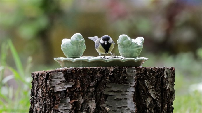 Zelené keramické pítko pro ptáčky ve tvaru pravidelného květu je nádhernou dekorací, která přitahuje pozornost nejen ptáčků, ale i všech kolemjdoucích a návštěvníků. Dva pěvci sedící na okraji pítka dodávají celému pítku hravý a veselý vzhled. Příjemně oživí vaši zahradu a stane se oblíbeným místem pro vaše opeřené návštěvníky, kteří se k vám tak budou rádi vracet.
