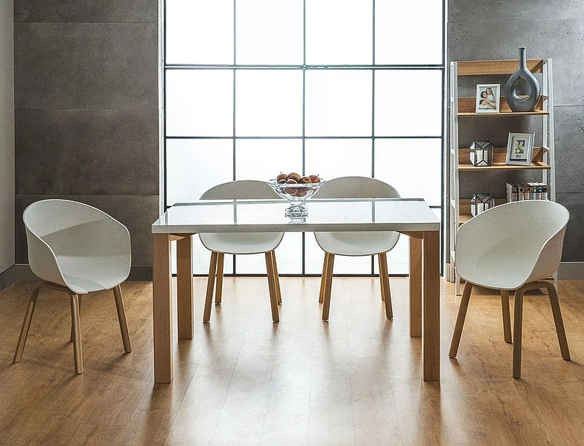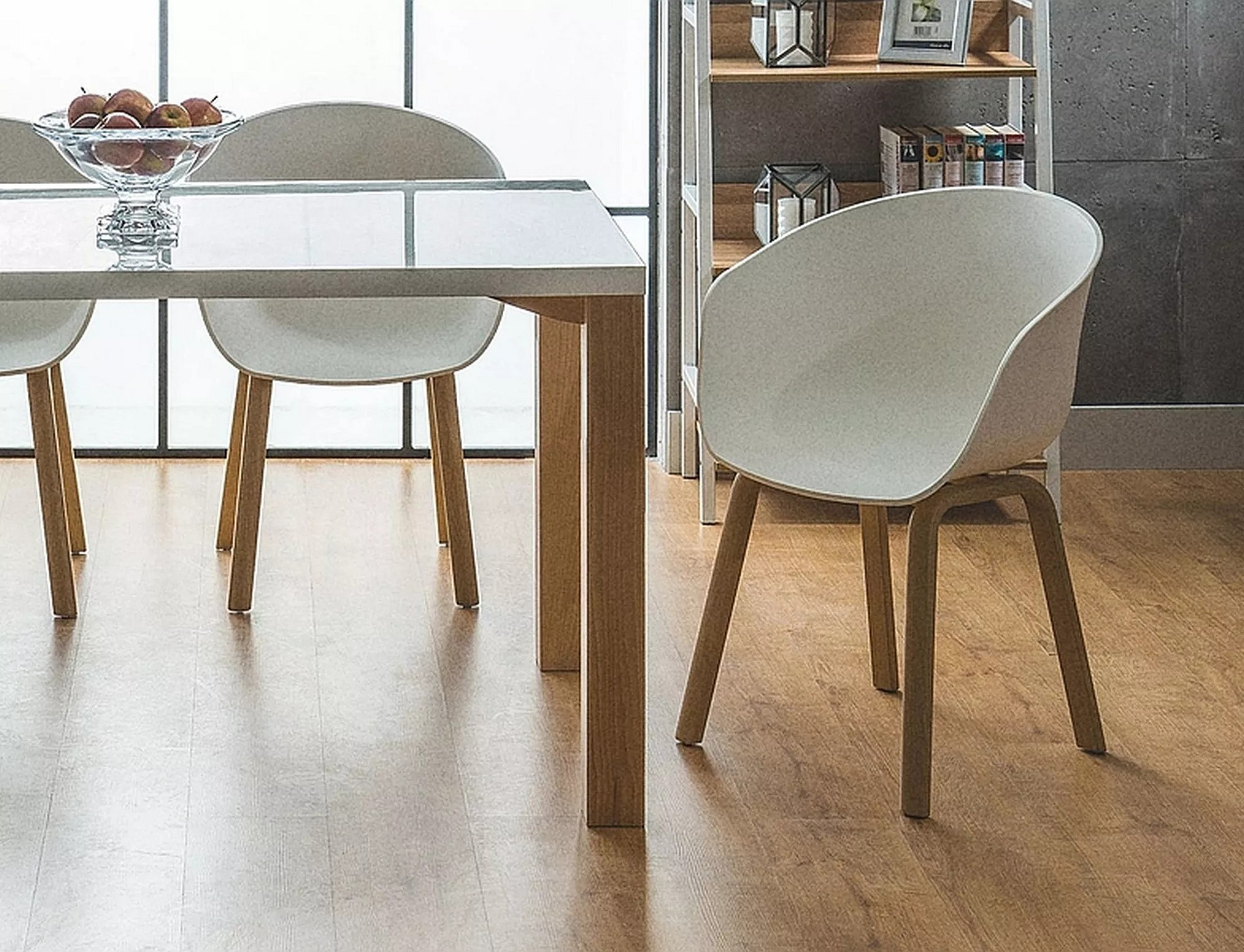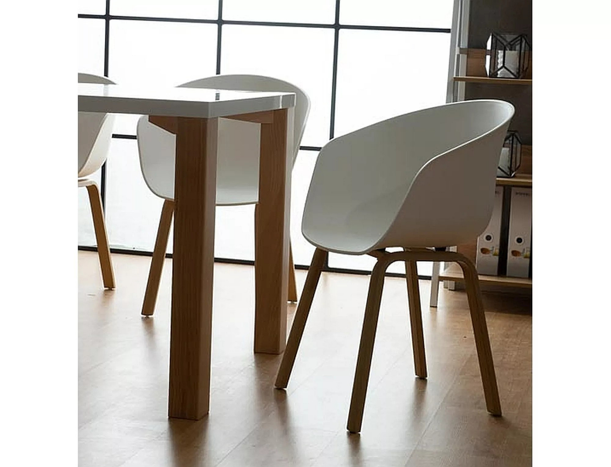 Krzesło, siedzisko tworzywo PP, kolor: biały / stelaż: metal, kolor:dąb.