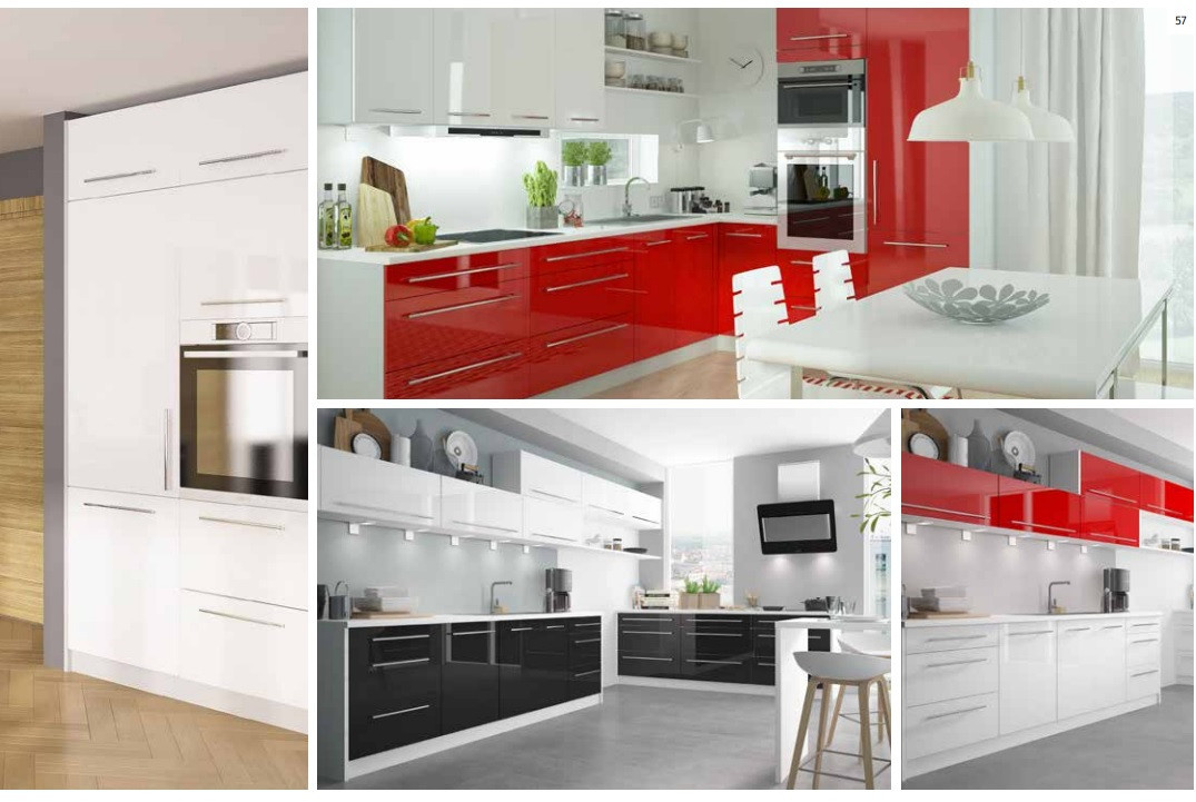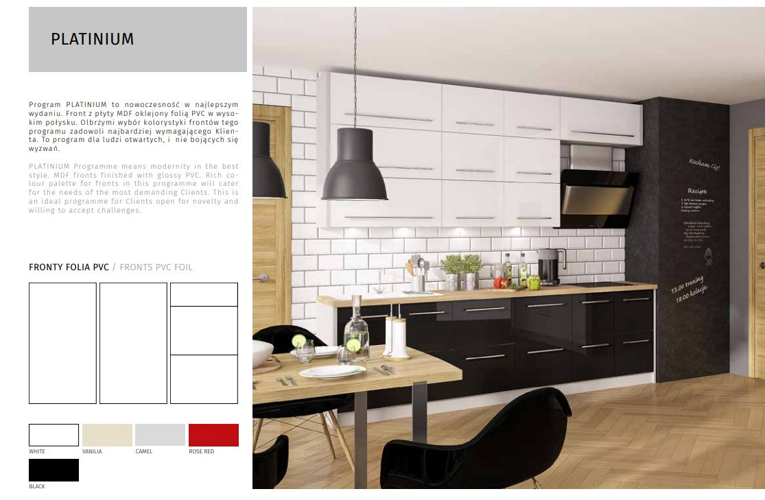 PLATINUM - moderní kuchyňská linka jednoduchého designu s vysokým leskem v délce 400 cm. Linka je dodávána bez celoplošného dřezu, který lze vybrat z naší nabídky.