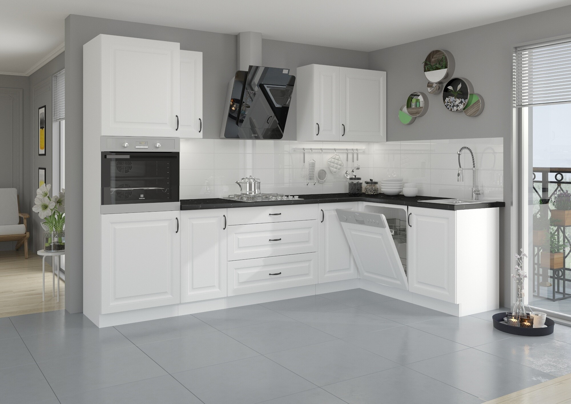 - Dvířka horních, dolních skřínek a dvířka vysokých skříní jsou universální (Pravé/Levé)