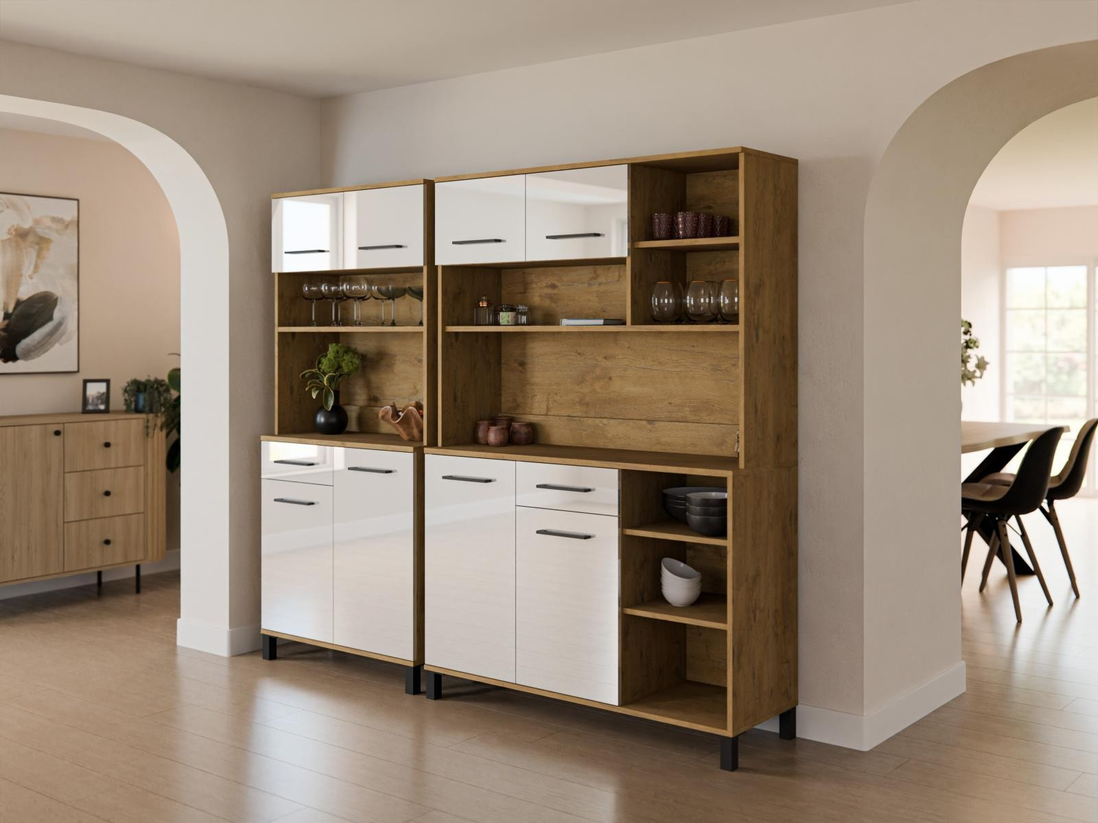 Kuchyňská skříňka Vega Bufet je ideální volbou pokud hledáte pohodlí při používání a nadčasový design. Dokonale propojuje estetiku s promyšlenou ergonomií, takže nábytek působí jako harmonický celek. Každý detail byl navržen s ohledem na komfort, funkčnost a eleganci, aby každodenní používání bylo stejně příjemné jako inspirující.
