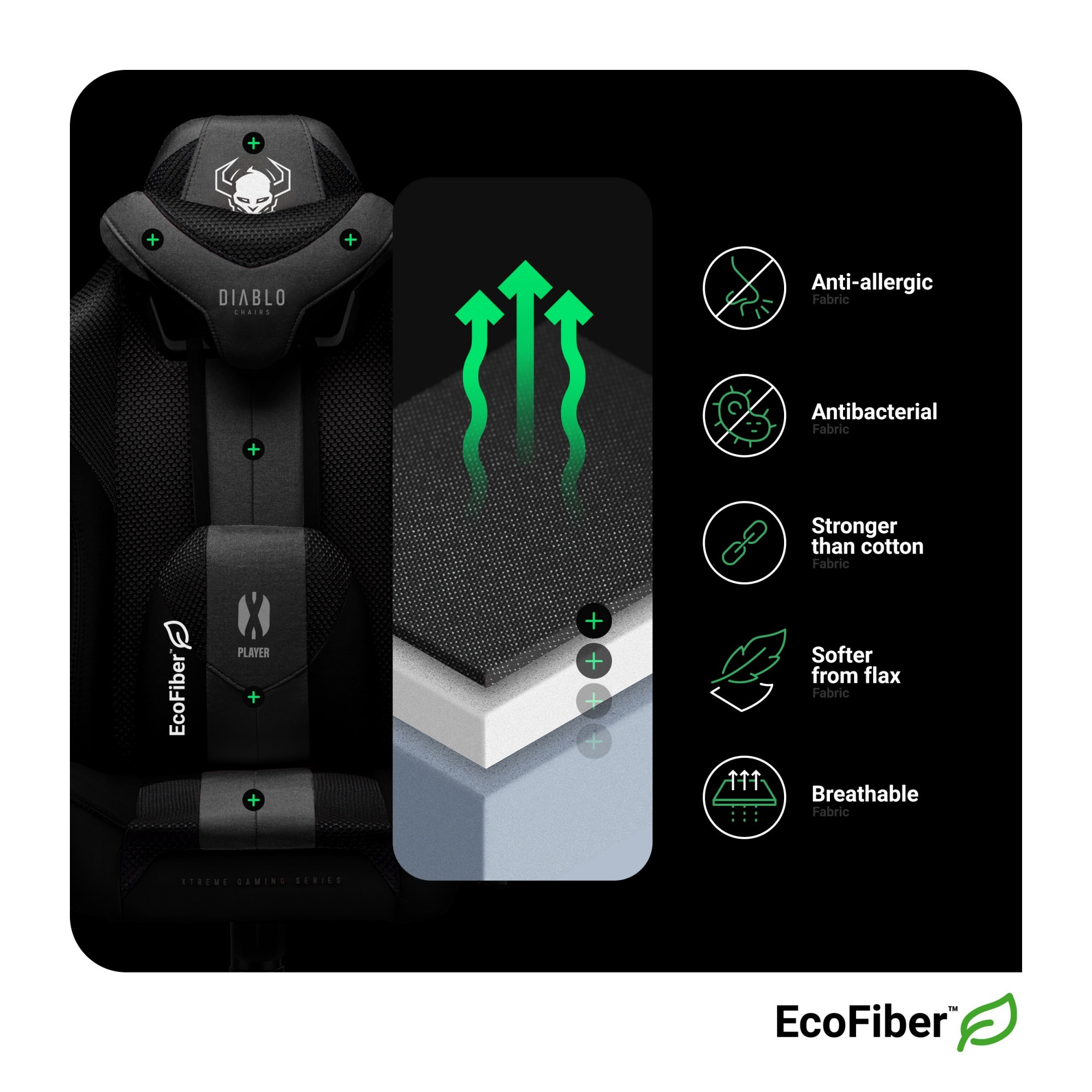 Textilní herní křeslo DIABLO X-PLAYER 2.0 ČERNO-ČERNÝ: NORMÁLNÍ VELIKOST Postarej se o své držení těla a zajisti si maximální pohodlí během každé hry! Před tebou je Herní křeslo Diablo X-Player, neobyčejný model, který spektakulárně promění interiér tvého pokoje a poskytne ti spoustu prozdravotního komfortu během každé hry. Poznej podrobnosti a získej jistotu nejlepšího rozhodnutí. Podívej se na masivní siluetu pokrytou hypnotizujícím čalouněním v odstínu hluboké černé a charakteristickými detaily a představ si, jak výraznou proměnou projde tvé herní prostředí s tímto neobyčejným herním křeslem. MATERIÁLOVÉ ČALOUNĚNÍ Díky materiálům nejvyšší kvality a prošívání Nylon™ LV3 Diablo X-Player vypadá skvěle a je mimořádně odolný a spolehlivý. Odolný materiál EcoFiber™ a síťovina Diablo Honeycomb™ s prodyšnou strukturou včelí plástve zajišťují potřebnou cirkulaci vzduchu, díky čemuž chrání před přehřátím i v teplých dnech. Hladká ekokůže HDS™ pokrývající boční část sedadla a zadní část opěradla vypadá skvěle a je překvapivě odolná proti oděru. ERGONOMICKÁ PODPORA DRŽENÍ TĚLA Profilovaná opěrka hlavy a měkký bederní polštář vám zajistí pohodlnou a ergonomickou polohu. Při každém opření se tvá páteř přizpůsobí správnému nastavení po celé délce, což ti umožní vyhnout se vzniku nebo prohlubování vad držení těla. Pružná paměťová pěna vyplňující opěrku hlavy a bederní polštář se přizpůsobí tvaru vaší postavy a síle jejího tlaku, a když vstanete z křesla, vrátí se do svého původního uspořádání. Díky takové flexibilitě ti zajistí plně komfortní pozici. SPOLEHLIVÁ PĚNA HR Masivní konstrukci křesla tvoří měkká pěna HR, která zaručuje mimořádné pohodlí při každodenní práci, studiu nebo hraní her. Sedák Dual Layer™ vyplněný dvojitou vrstvou pěny ti zajistí ještě pohodlnější a měkčí polohu. BALÍČEK NEZBYTNÝCH REGULACÍ Mechanismus Tilttech™ Butterfly ti umožní přizpůsobit výšku křesla vzhledem k výšce nebo úrovni stolu. Získáš díky tomu pohodlnou a stabilní pozici a přirozeně přizpůsobíš polohu svých zad k bederní opěrce a opěrce hlavy. Odolné područky Armtech™ Hybrid SoftTouch pokrývá měkká pěna, takže jsou mimořádně pohodlné. Díky regulaci ve třech rovinách stabilizují postavu a účinně odlehčí ramena, předloktí a zápěstí. Systém Tilttech™ Gear umožňuje přizpůsobit úhel sklonu opěradla a vestavěný mechanismus Tilttech™ Swing poskytuje možnost příjemného houpání. Diablo X-Player ti poskytne maximální pohodlí a zajistí relaxaci, kdykoli si budeš přát. SOLIDNÍ ZÁKLADNA Pevná pětiramenná základna zakončená kaučukovými kolečky PFC™ 360 zajišťuje, že křeslo poskytuje plnou mobilitu a povrch podlahy zůstane bez škrábanců. Křeslo pro hráče Diablo X-Player spolupracuje s každým pohybem siluety díky mechanismu zvedáku Air Damper™ System. Správná amortizace je zárukou měkké a pohodlné polohy. Komfort a bezpečnost jsou základem každé uspokojivé hry. Naše křeslo ti navíc zaručuje neobyčejné emoce a revoluci v nastavení - přesvědč se!